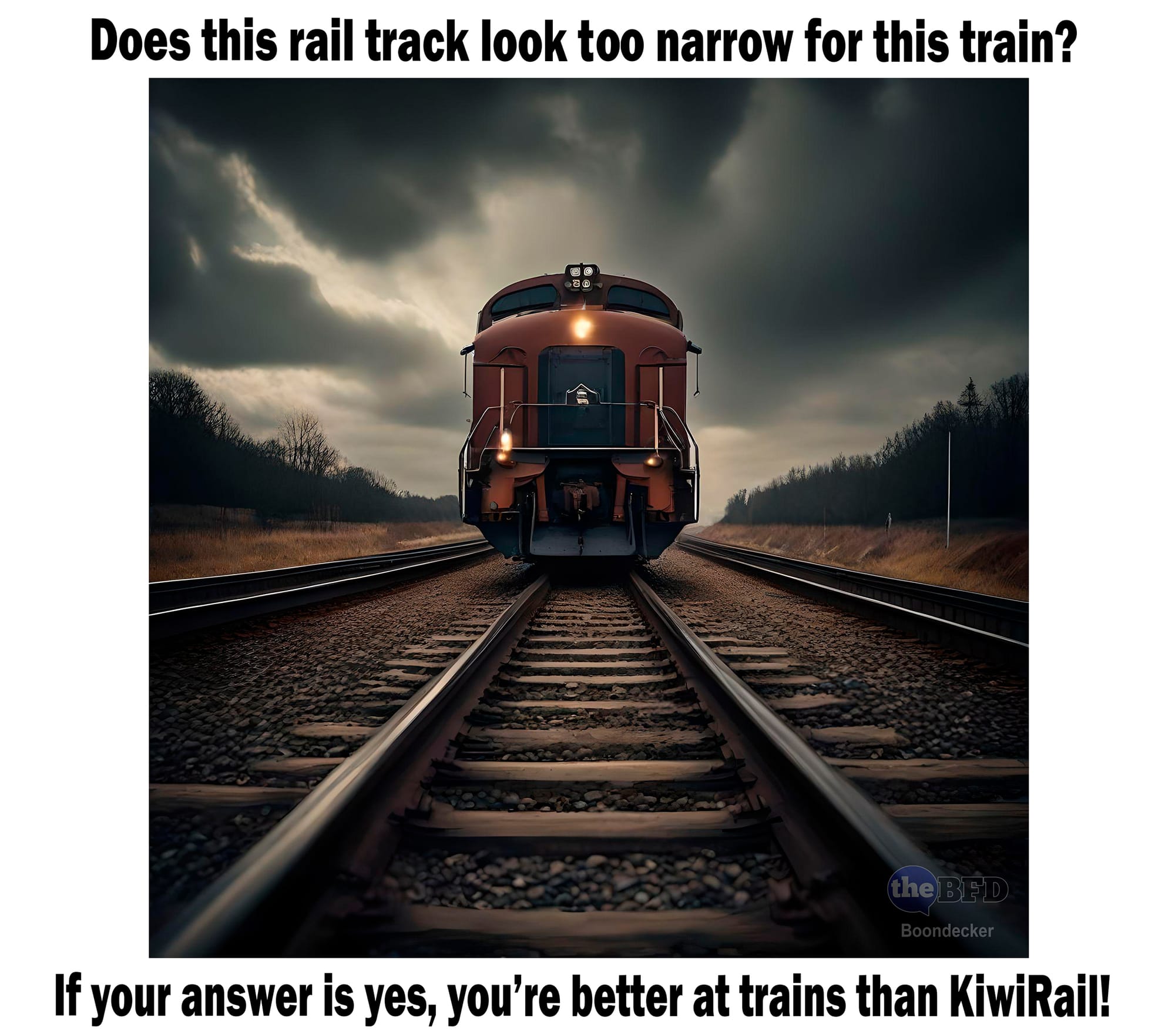 KiwiRail Guaged. Photoshopped image credit Boondecker. The BFD.