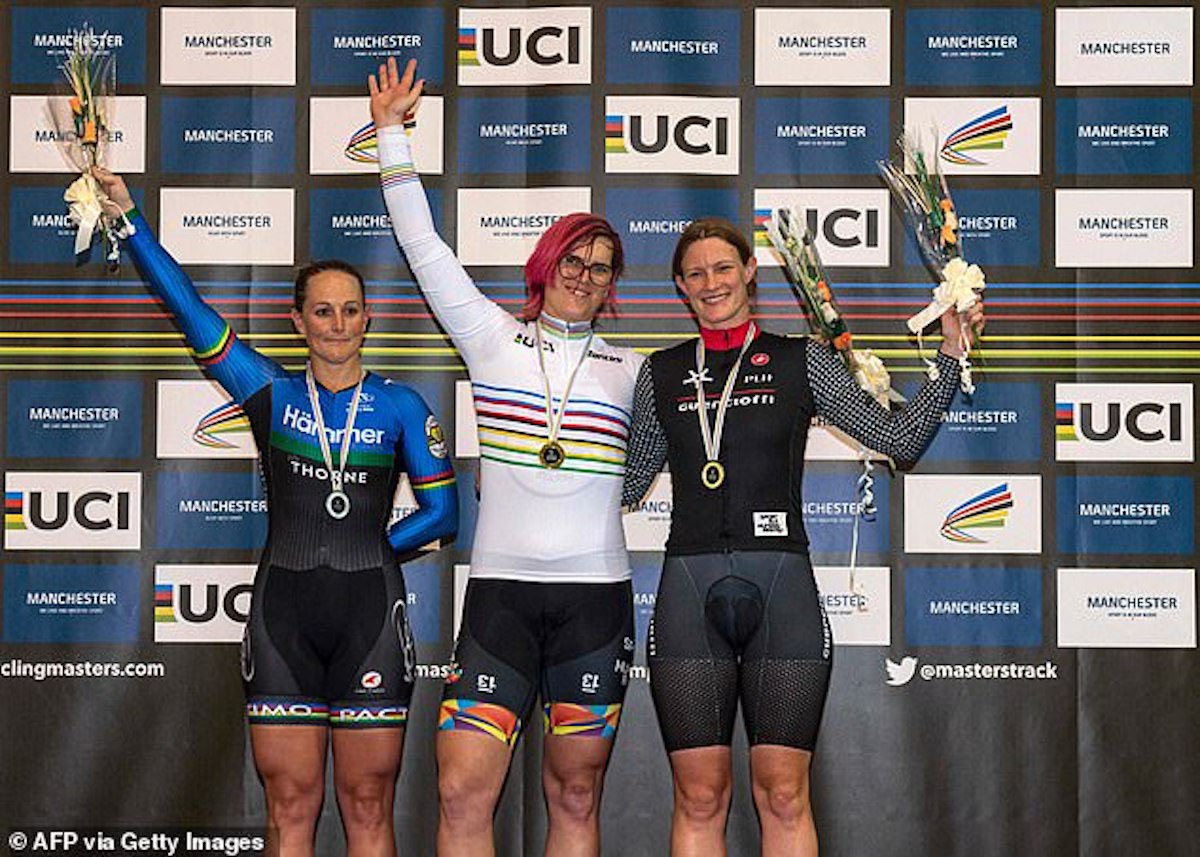 The transgender cyclist who won her second world title on Saturday accused the woman in second place of ‘poor sportsmanship’ for refusing to link arms with her on the World Championship podium.