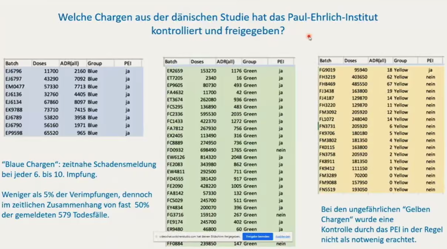 This is shown in the below slide from Dyker’s presentation during the Punkt.Preradovic interview. The title reads: “Which batches from the Danish study did the Paul Ehrlich Institute test and approve for release?”