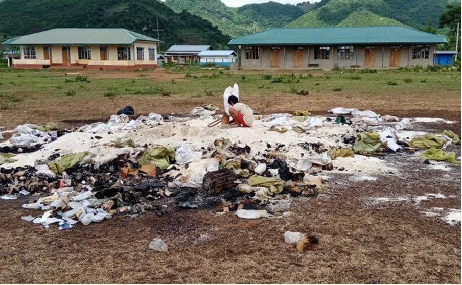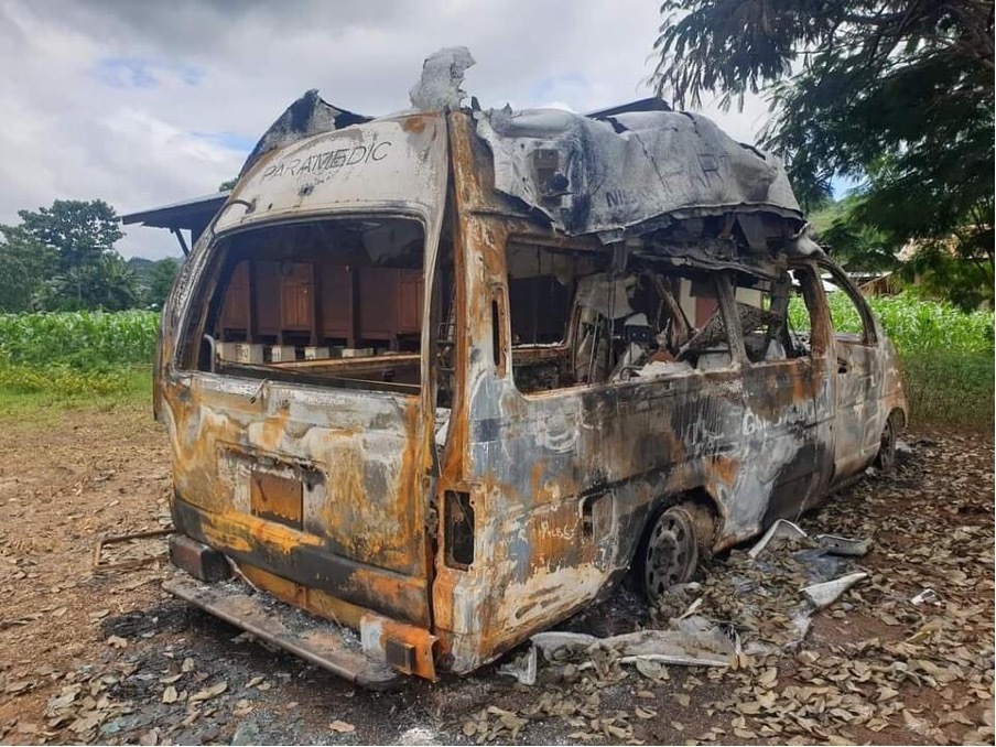 The military entered the village in Karen State and burnt 80 bags of rice, medical supplies and the rescue truck used by the village. This is now part of a deliberate strategy to demoralise and then starve the citizens into submission.