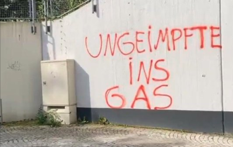 … and hate-drunk New Normal German fascists are going around spray-painting “GAS THE UNVACCINATED” in big red letters on the walls of courtyards …