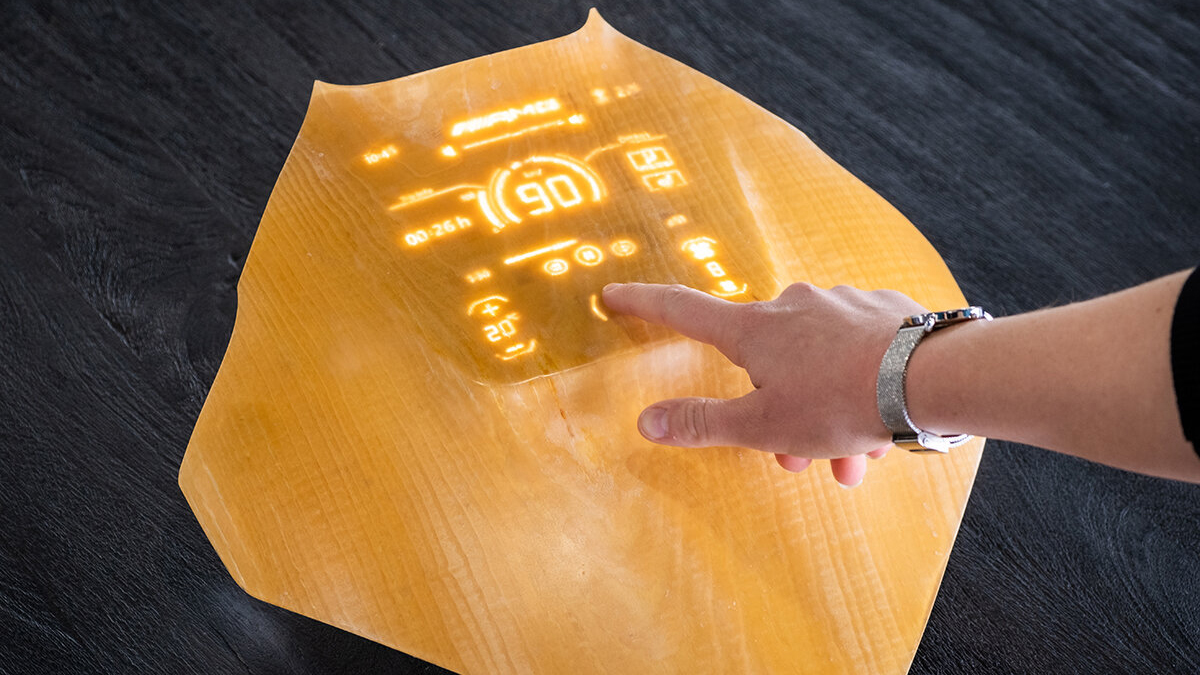 Another application being explored is integrating electronic displays into touch-sensitive, semi-transparent wood panels, creating visually stunning dashboard displays.