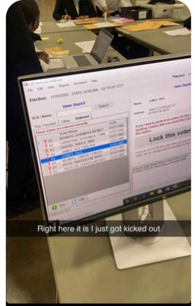 A poll watcher was kicked out of the TCF Centre where Wayne County/Detroit votes are being counted when they snapped a shot of a screen showing seven out of eight voter names listed on the screen image below – had birthdays shown as January 1, 1900 making them 120 years old.