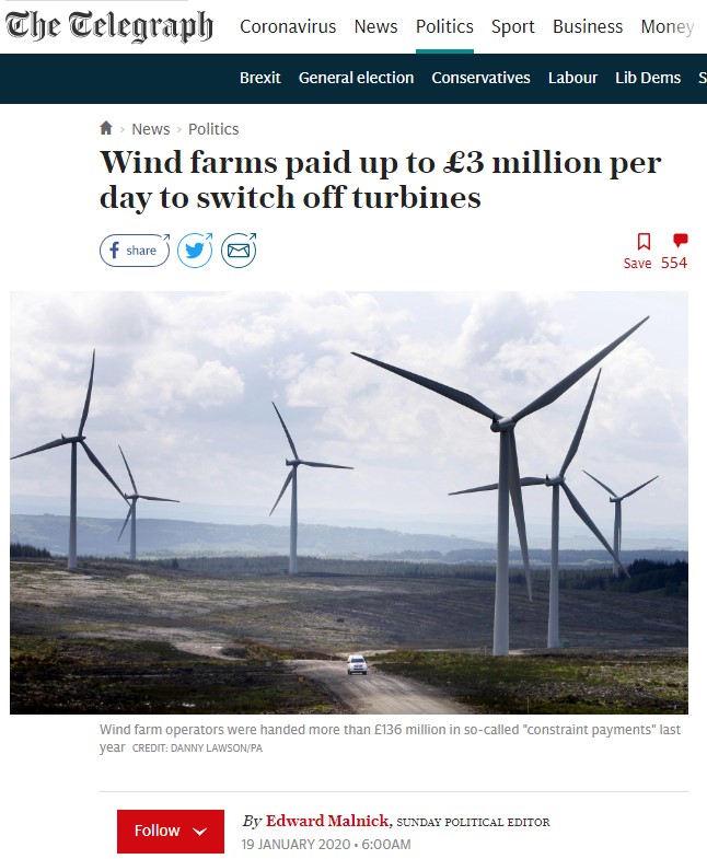 The renewable energy pricing anomalies strike again. Not only does the long-suffering taxpayer shell out to windfarms operators to not produce electricity it appears they may be subsidising the smugmobile owners as well.