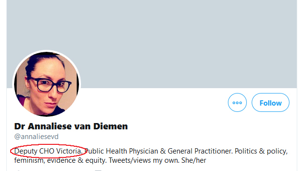 “Day off” or not, she sent the tweet in her official capacity of “Deputy CHO Victoria”. The usual suspects like Islamo-foghorn Yassmin Abel-Magied can screech all they like about “free speech”, but the instant you’re on the public dime, your free speech is off the table. You’re not a private citizen any more, you’re a public servant and you’re bound not just by the Public Service Act but by your contract of employment.