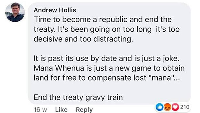 Newly elected Councillor at large, Andrew Hollis has dared to use his free speech to say he thinks the Waitangi Tribunal and treaty cash payouts are past their use-by date.