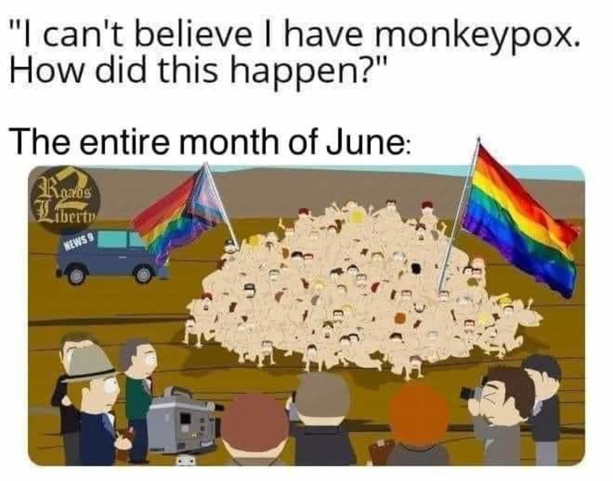 After all, the rest of us were forced to give up everything from visiting dying relatives, to weddings, funerals, playgrounds, even going to the beach, because of a disease orders of magnitude less lethal than monkeypox. Yet, “Pride” events — which in practise mean “non-stop gay sex orgies” — have been carrying on, regardless. With the open blessing of the same authorities who locked us all in our homes during 2020-21.