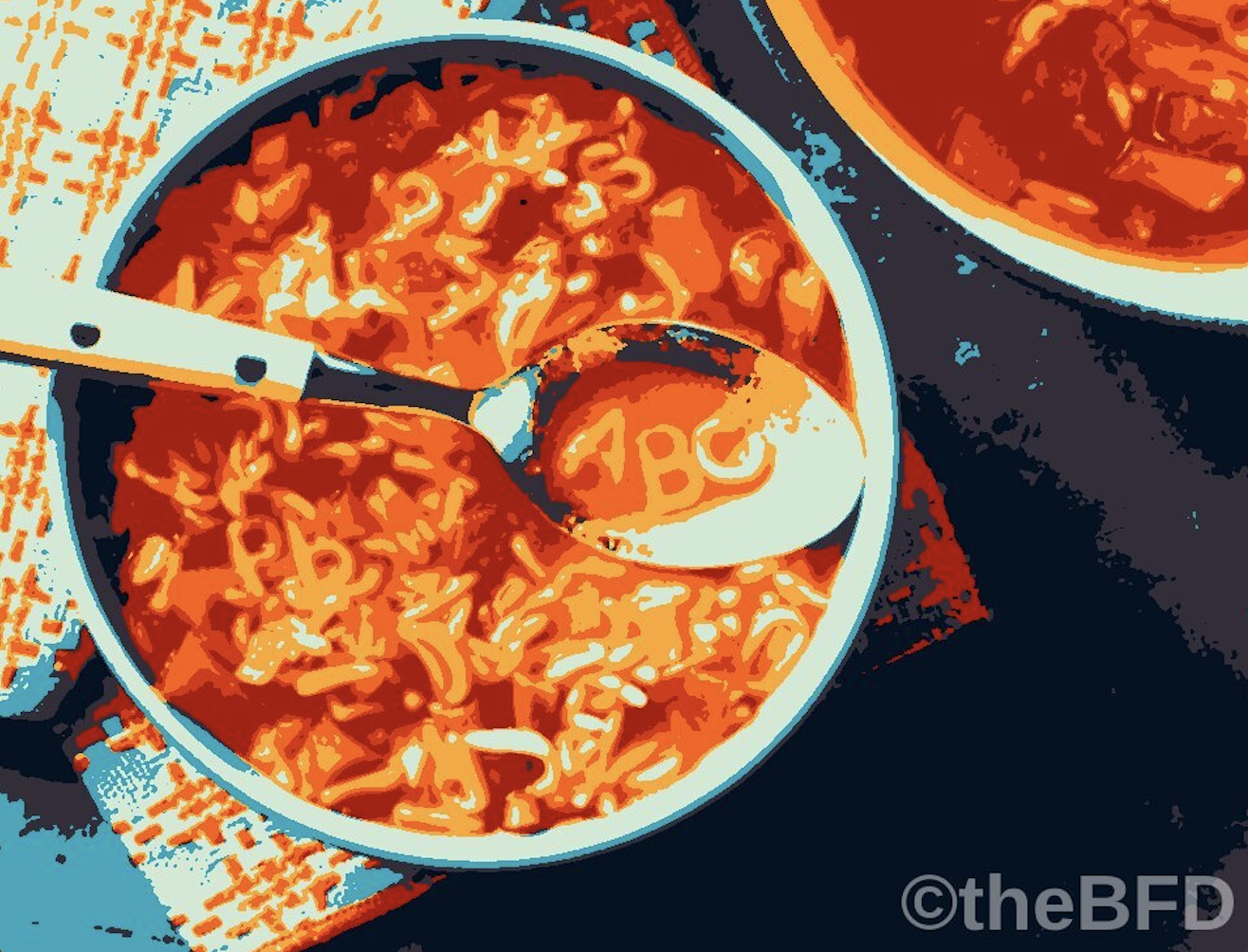Floating around in the alphabet soup, T suddenly let out a huge sigh, followed by a wail of despair.
