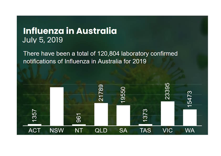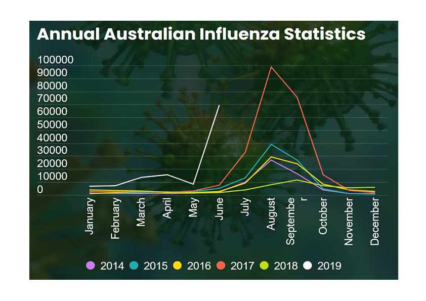 For the record: in 2017, Australia recorded 98,687 influenza cases. In June 2019 when The Advertiser article was published, they had recorded 69,281.