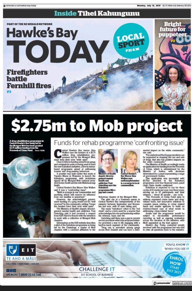 The Hawke’s Bay Today (owned by the NZ Herald) revealed Mongrel Mob leaders received $2.75 million via a contract from the Ministry of Health. The money was to run a drug rehab programme – the very drugs the Mob peddles. In other words, the gang gets people hooked on meth, then puts them up at a marae for rehab, and gets rich at both ends.