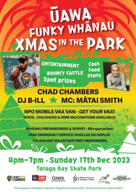 We have recently been horrified by an advert for an event in Tolaga Bay. The event is the Funky Whanau Xmas in the Park and guess who will be there? The Mobile Vax Van offering free Covid, childhood and MMR vaccines!