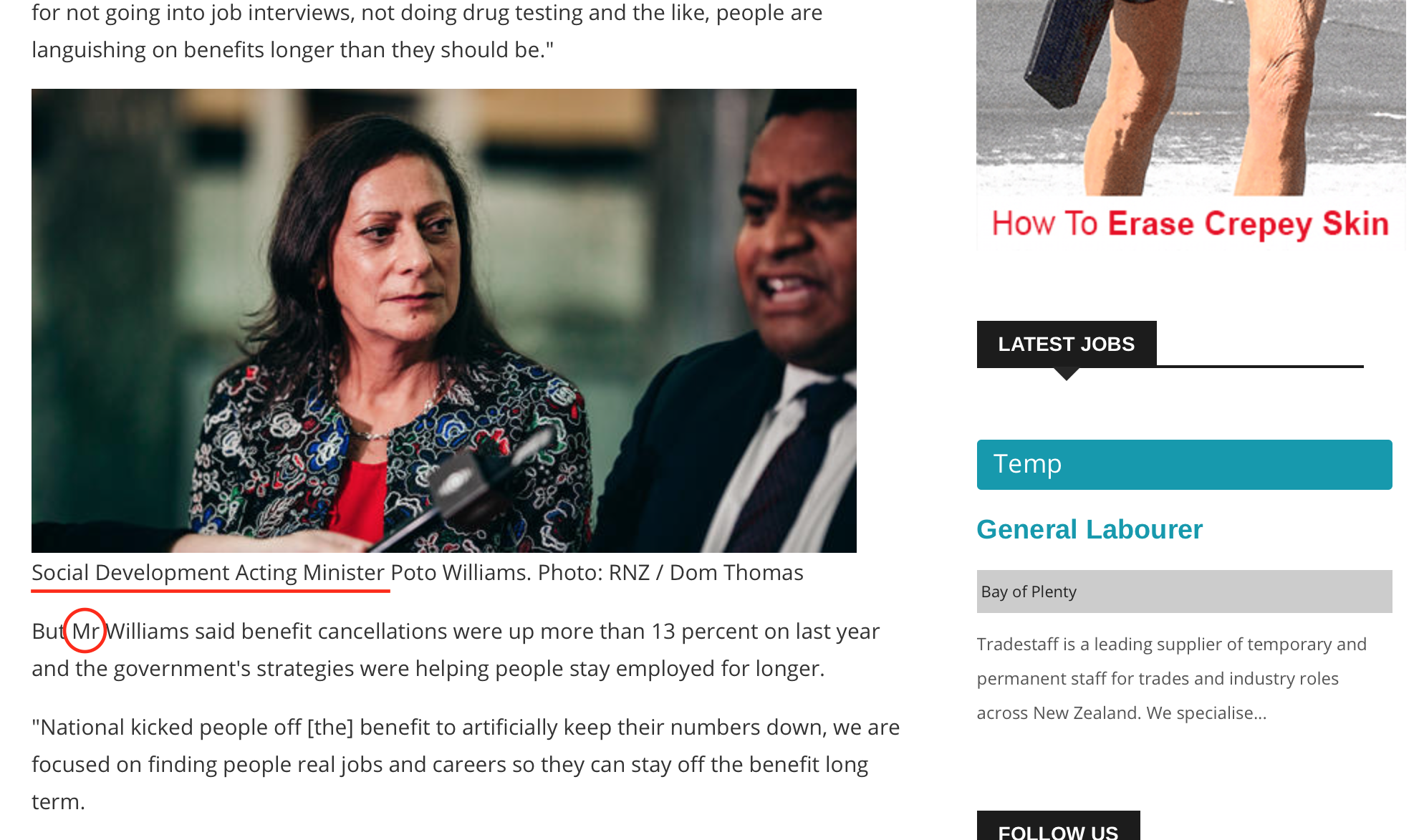 Social Development Acting Minister Poto Williams. Probably mean Acting Social Development Minister. Whatever, but they go on to call her Mr Williams. More gender confusion at RNZ.