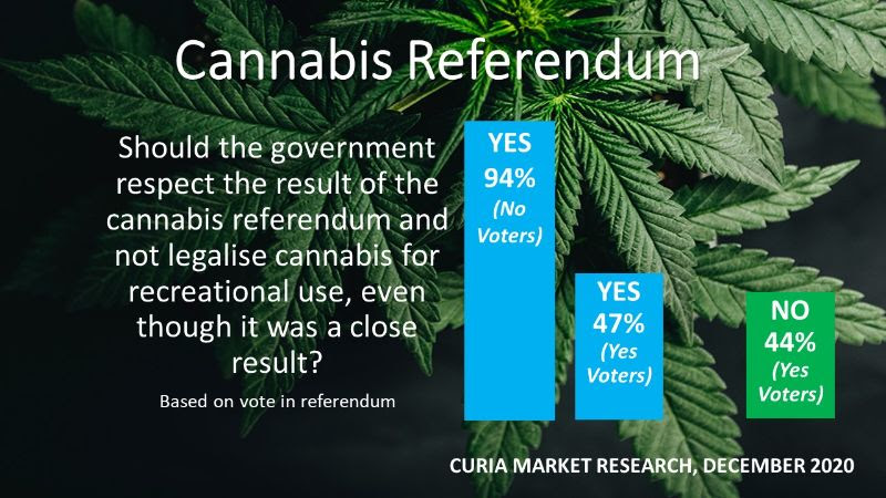 SUMMARY: Only 1 in 4 New Zealanders want the government to ignore the results of the cannabis referendum despite the close result, and even half of the YES voters believe that the result should count.