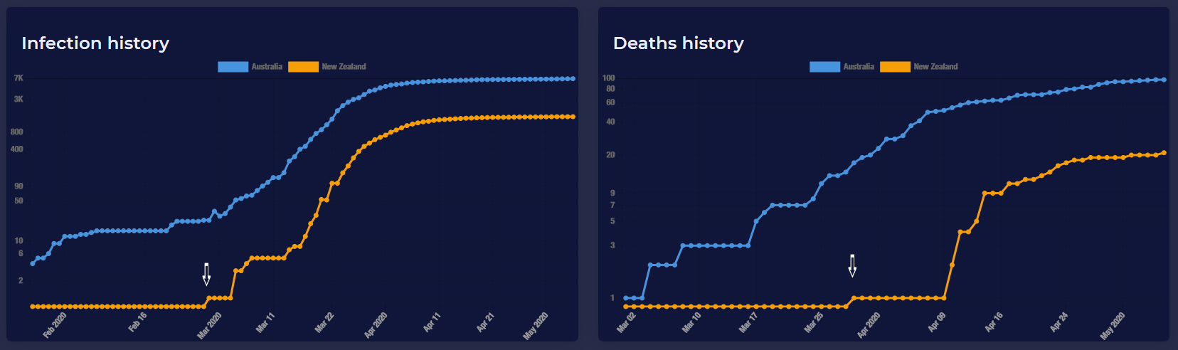 If they were honest enough to check the latest data (the article was published on 6 May), the picture would be much clearer. Still lagging a month behind Australia, New Zealand has fared markedly worse.