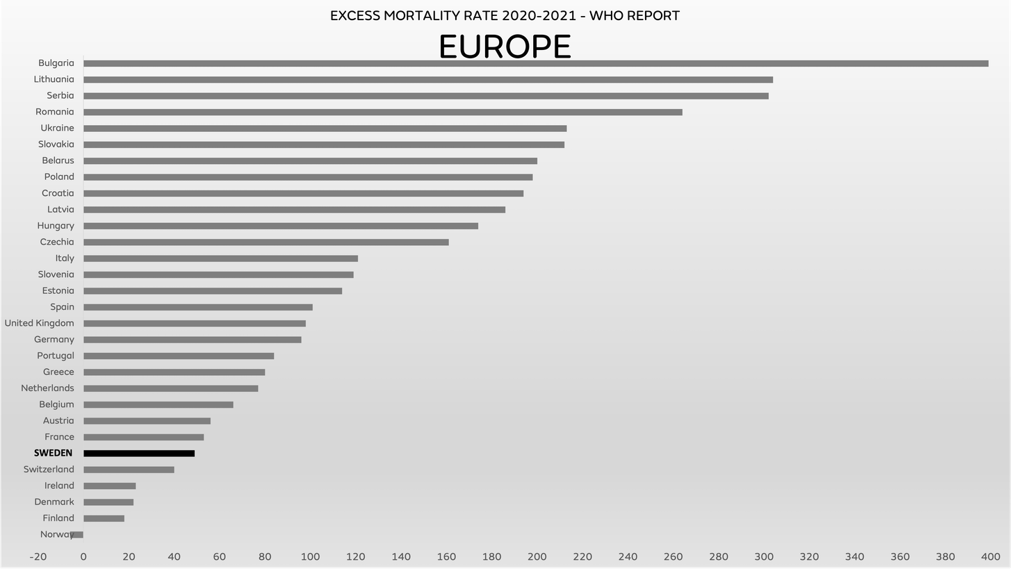 The WHO report contains many illuminating statistics from the first two years of the pandemic which illustrate that Sweden’s approach was undoubtedly the correct one; once again contradicting the expert derived ‘consensus’ that advocates for endless restrictions on normal life.