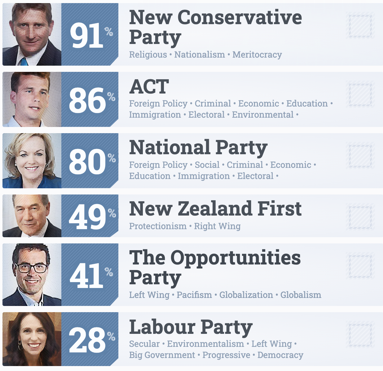 Considering that I am the editor of a conservative new media site I think that my result is just as it should be and reflects my views accurately. I am not impressed however with how they have given the value of “democracy” solely to the Labour Party. What on earth were they thinking?