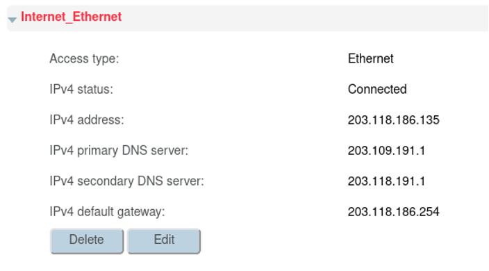 Select Internet Settings and scroll down until you see the information concerning Internet Ethernet.