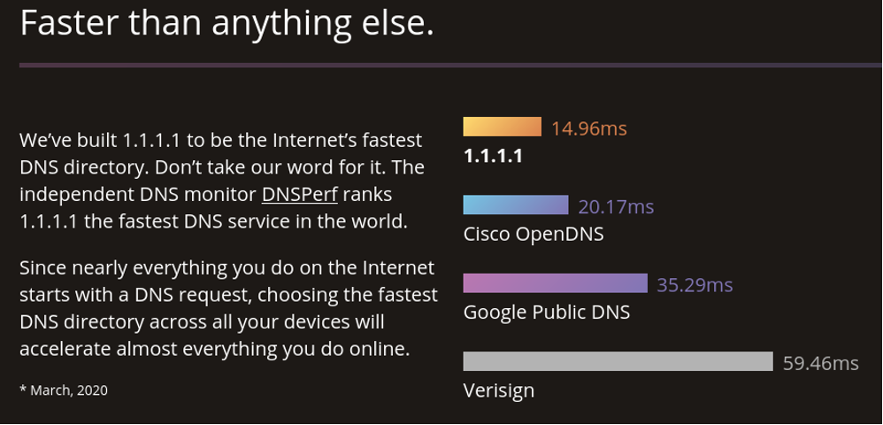 1.1.1.1 – By Cloudflare. Here’s a youtube video on this.