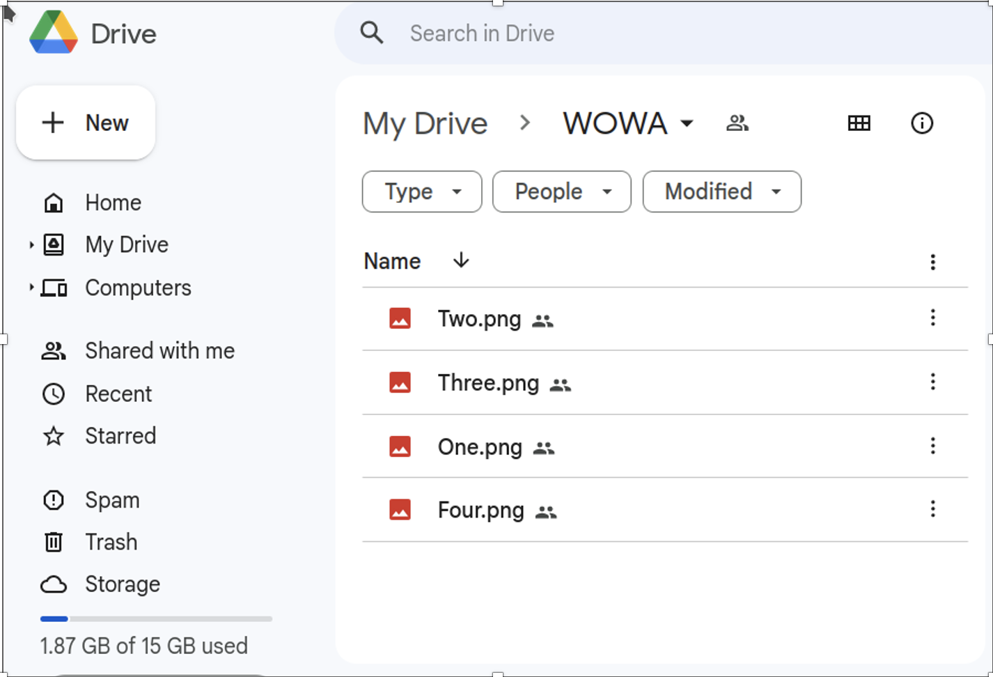 I prefer to create a folder specifically for this activity in Google Drive. This makes it much easier to control these files, and to delete them once they are no longer required. You don’t want unnecessary files eating up your 15 GB of cloud storage, do you? To make a new folder, select “My Drive” in the left menu, then click the “+ New” button, and choose “New Folder” in the pop-up menu. Give it a meaningful name and click Create in the next pop-up. Done.
