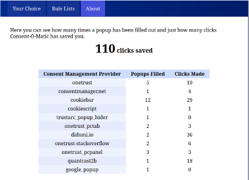 They looked at 680 pop-ups and combined their data processing purposes into 6 categories that you can toggle on or off. Sometimes their categories don’t perfectly match those on the website, so then the add-on will choose the more privacy-preserving option.