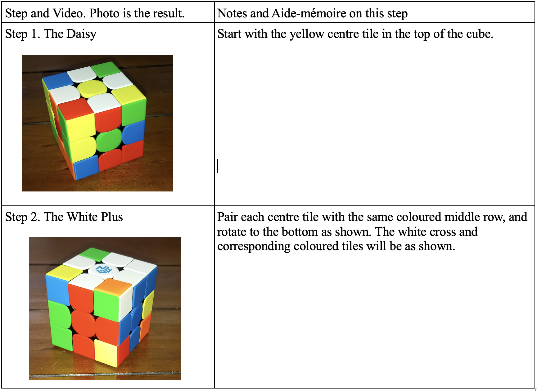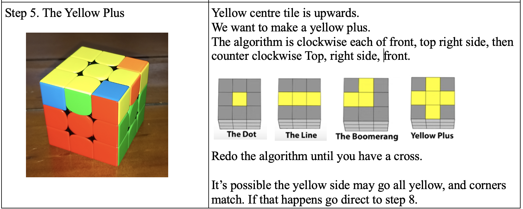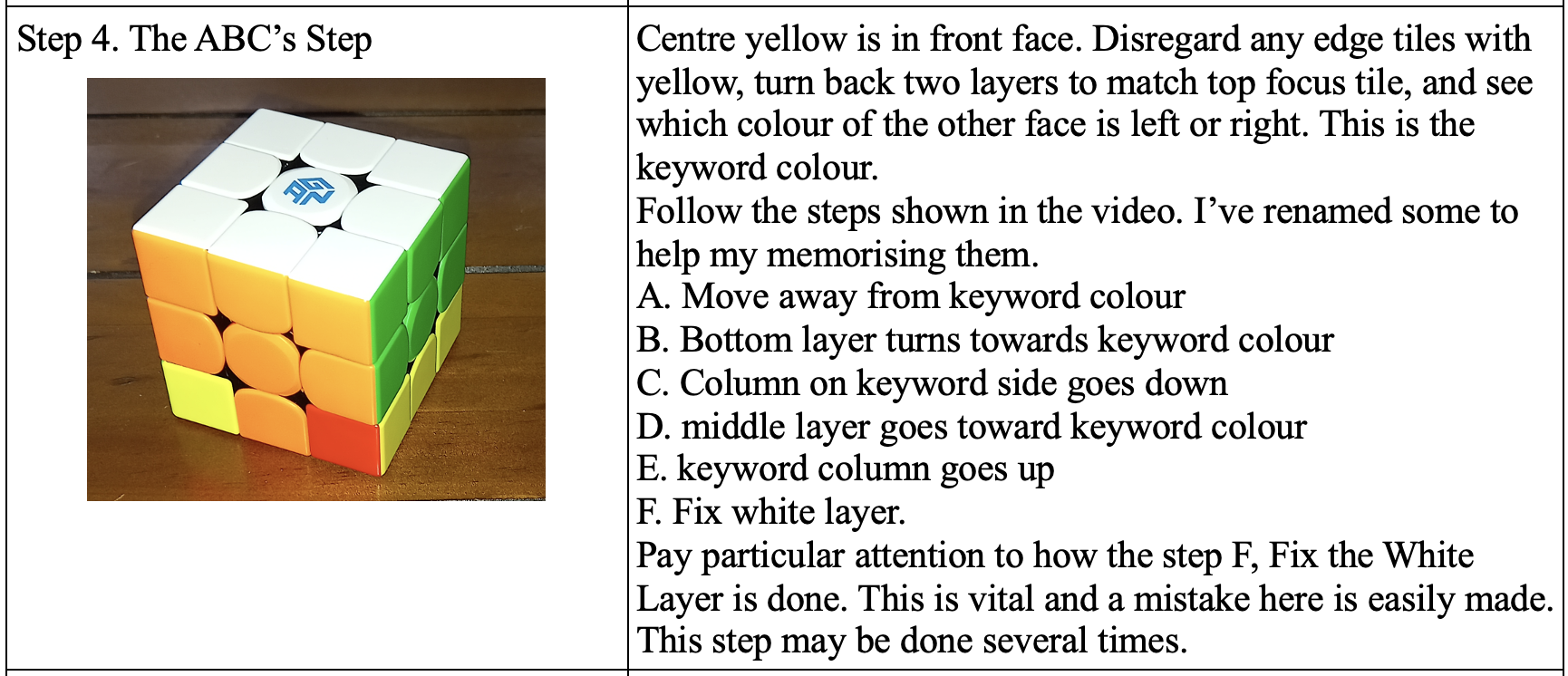 This comes out most times for me, but I find that every so often I either make a mistake, or there is an error in my starting order. In that case, I start over again, after having sworn at the cat for making me make an error. I can complete steps 1-4 without referring to the instructions. Hope you enjoy this and get your cube solved.
