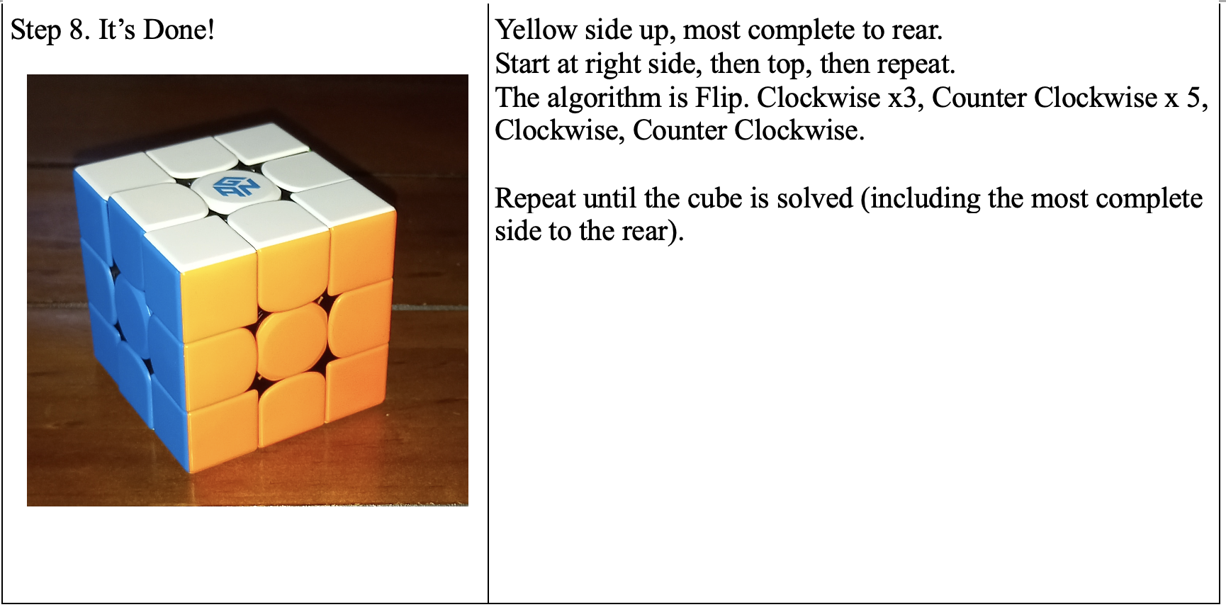 By breaking this down into eight steps I think we can all do this. No! I know we can do this. After all, with only 43,252,003,274,489,856,000 starting combinations, how hard can it be?