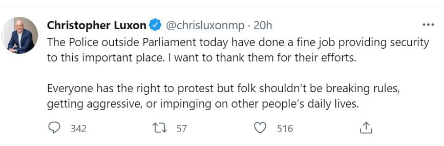 Luxon missed a fabulous opportunity there. If he had gone out to listen to the protesters, heard their views and then asked them to please go home, it would have avoided the carnage we are seeing now. He could have done that. He should have done that. It would have shown him to be a man of the people, a prime minister in waiting, and would have garnered him literally thousands of votes in next year’s election.