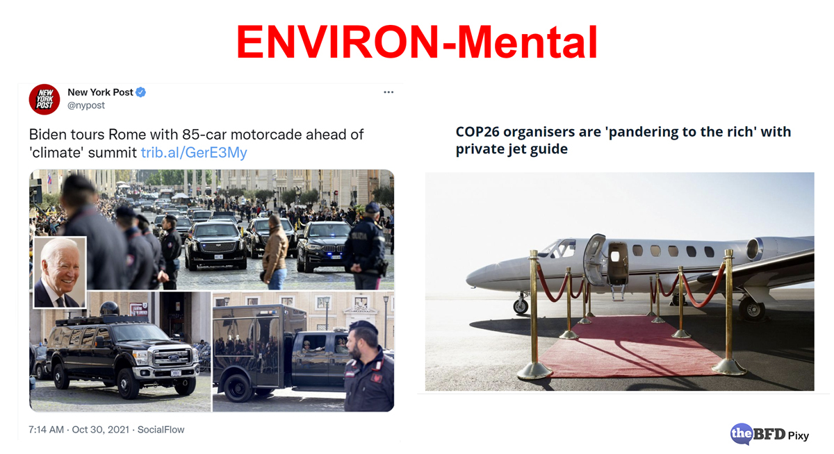 This event wasn’t a case of some “Helen of Troy” launching a thousand ships, but one of collective human insanity launching 25,000 virtue-signalling illuminati with their 400+ private jets, emitting some 13,000+ tonnes of CO2.