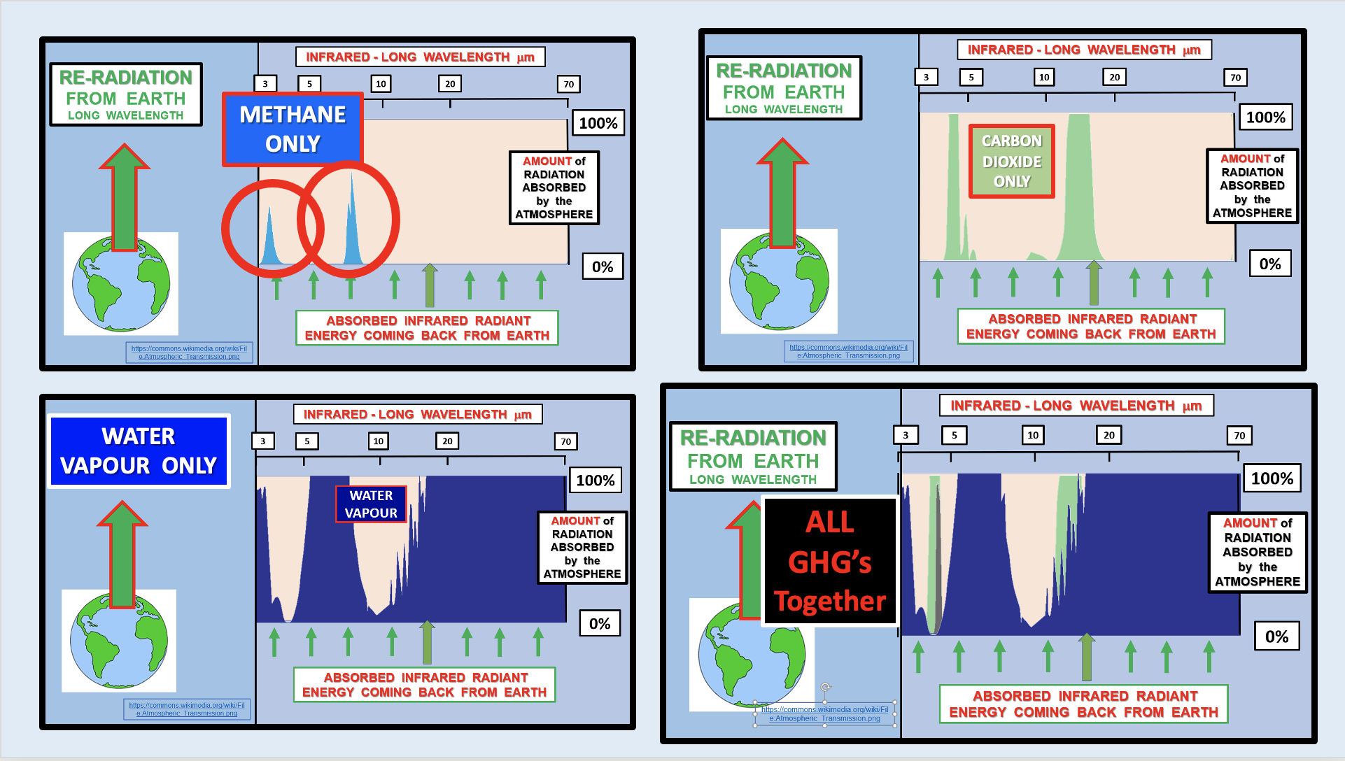 - And each water vapour molecule has ten to twelve times the radiative efficacy of CO2 for outgoing radiant heat. (evidenced also by atomic absorption spectroscopy)