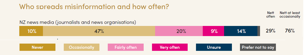 At the stroke of midnight, an article appeared on Stuff informing us of yet another (large) fall in trust towards this country’s main-stream-media from the public, as published in AUT’s third comprehensive “Trust in news in New Zealand” report. The press release accompanying the AUT report includes a prominent quote stating the very obvious:
