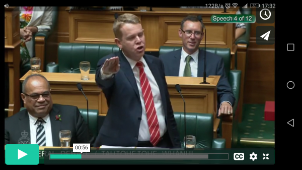 Oberfuhrer Hipkins accidentally reveals his political affiliation.