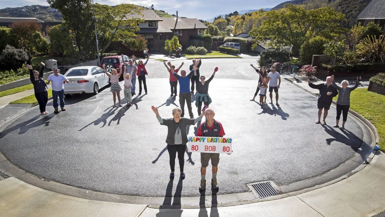Instead of spending his 80th birthday trackside at the races in Sydney, Bob Brown celebrated the milestone at home in Nelson with a bunch of birthday cheer from his neighbours.