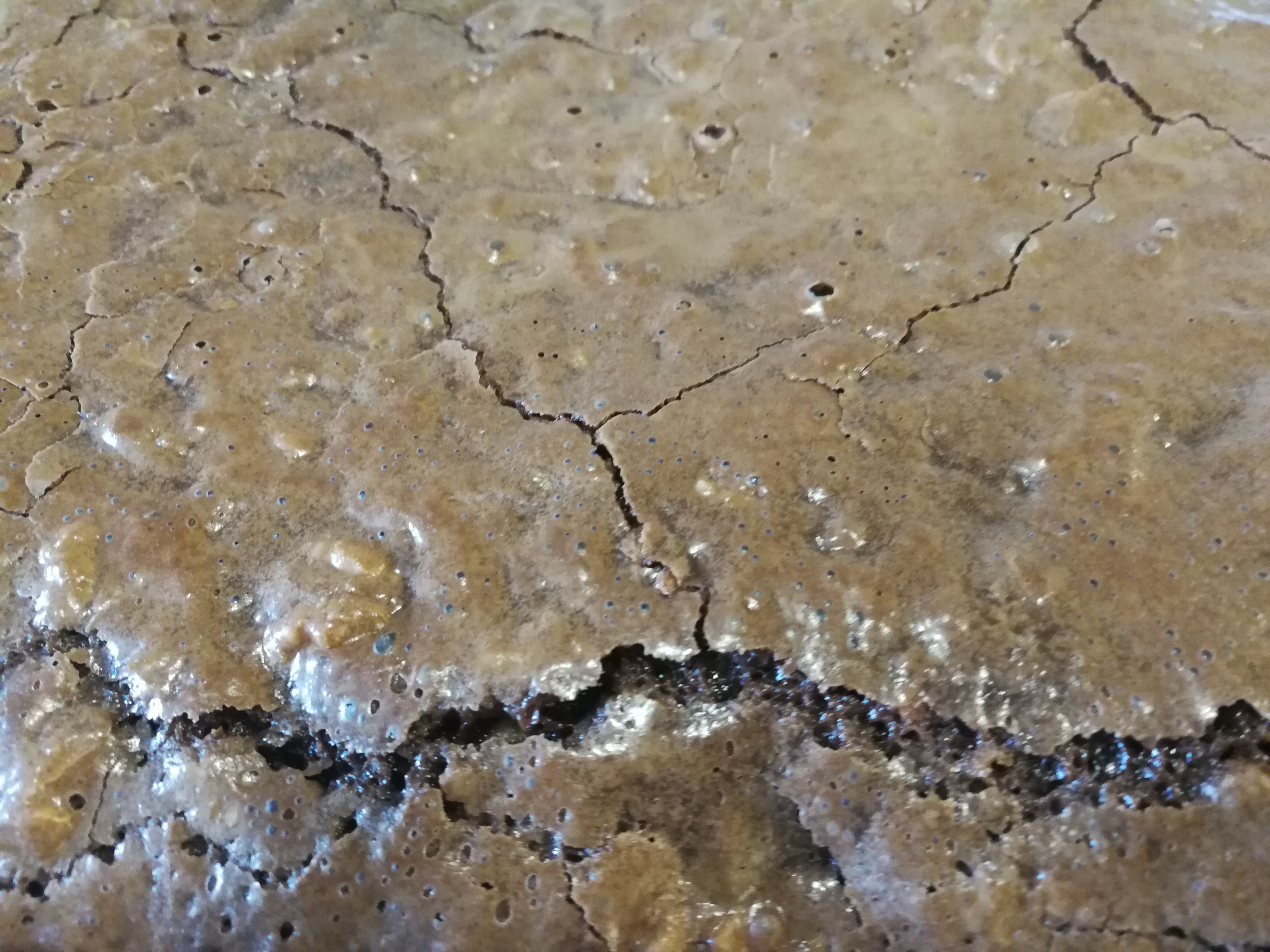 Sugar and room temperature softened butter into mixer with paddle, mix until one and then add one egg at a time. If you want a fluffy light mixture you should add an egg every 2-3 minutes and stop each time before adding the next egg and with a spatula clean the mixture from the sides of the mixing bowl and the paddle. Once mixed fully add in the cornflour and rum in one go and mix by pulsing, then pour into a 30 x 25 paper lined pan and level.