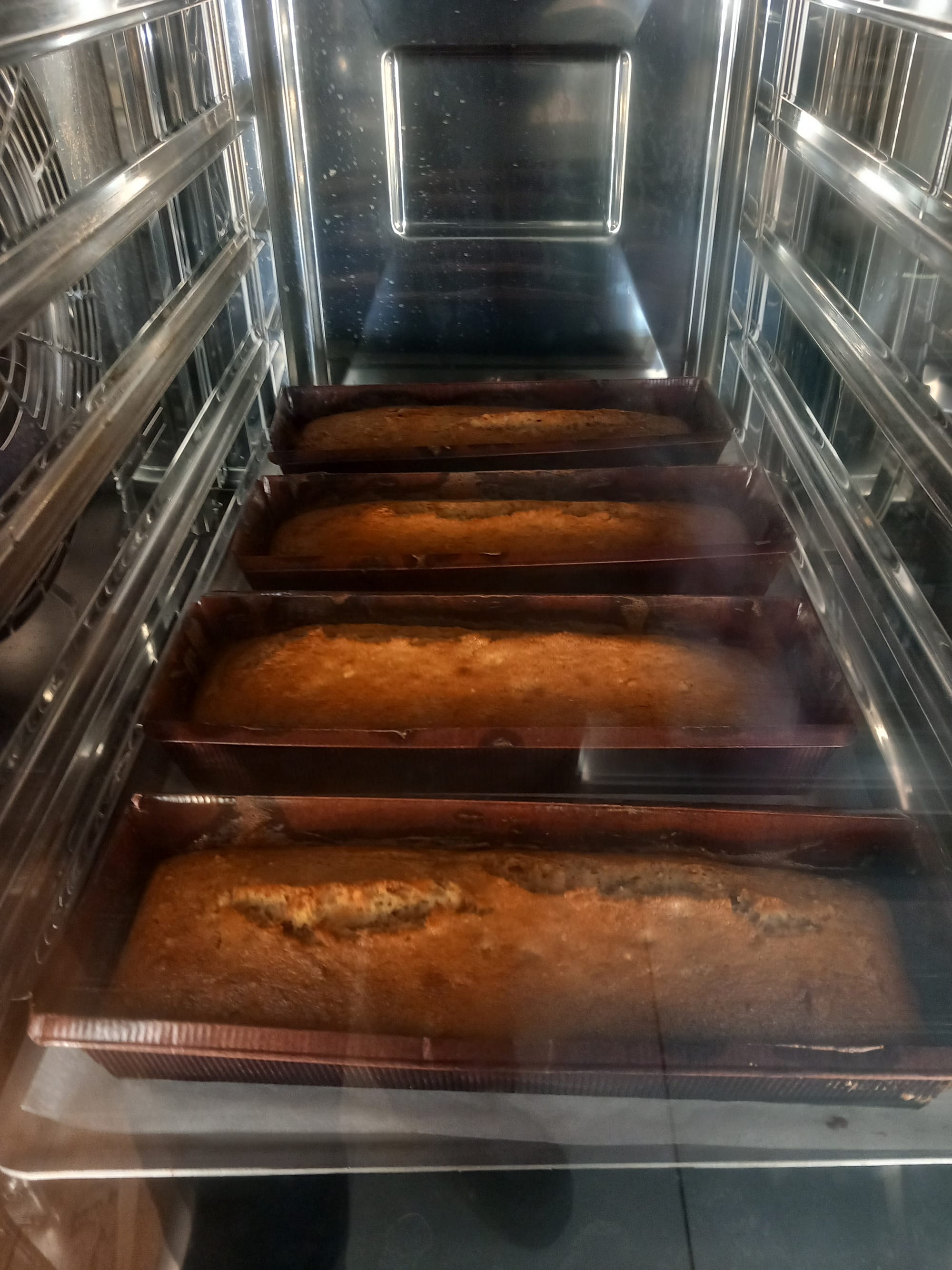 Distribute evenly between two standard loaf tins. Unless using single-use tins, put baking paper on the bottom of the tin and rub butter around the inside.