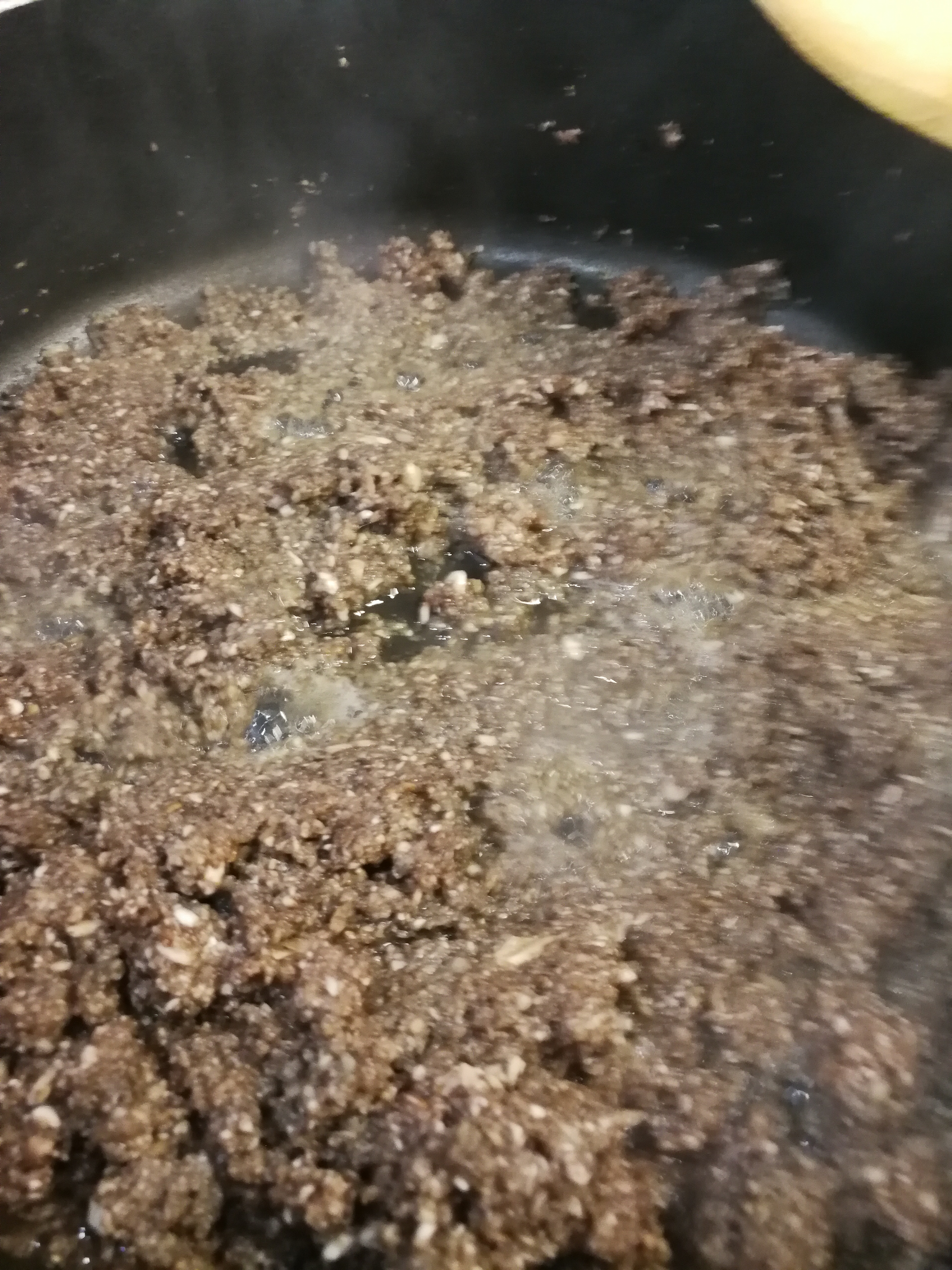 First, either chop the mushrooms very very small or place them in a food processor and pulse until they are almost a mulch. Put them into a hot fry pan without oil, add a pinch of salt and a few twists of pepper, stir and toss them until all the liquid has evaporated and they are almost dry. Set aside to cool.