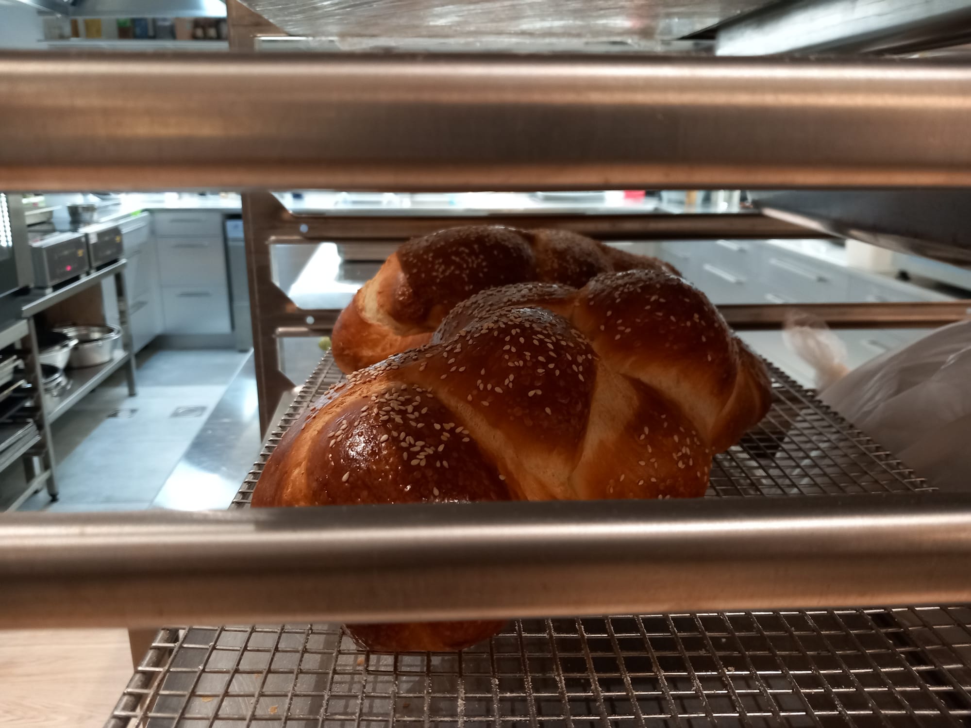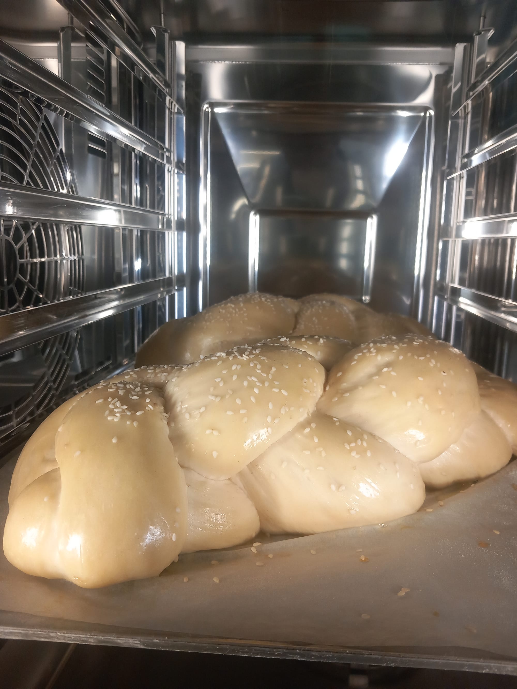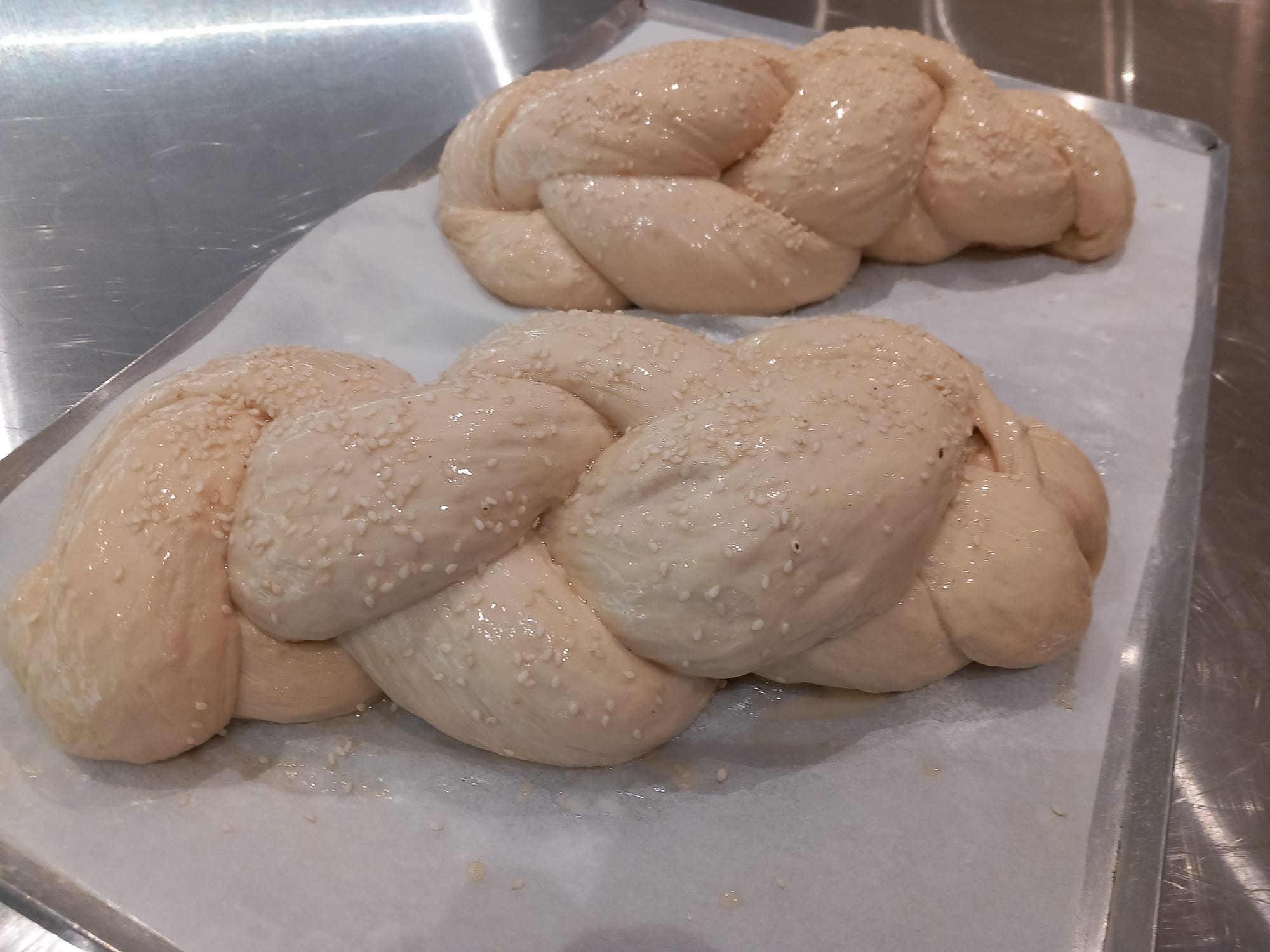 Once braided, brush with egg wash, sprinkle sesame seeds on top if you desire and pop the assembly into a preheated oven at 180°C for 30 minutes. Once baked remove to rack to cool.