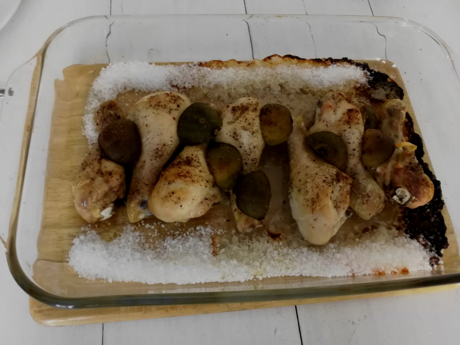 - Coarse salt (500 gram) for the bed to cook the chicken on