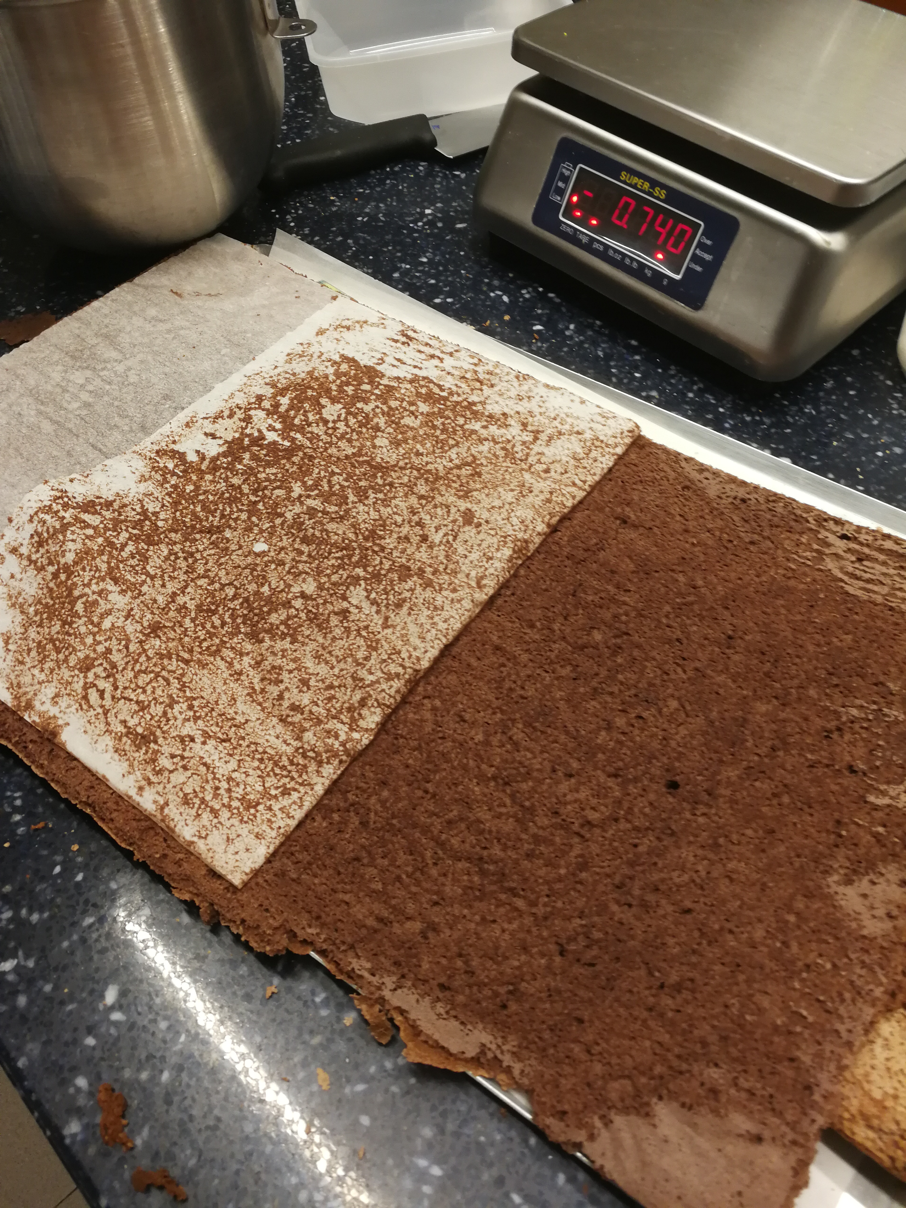 Bake each tray individually as home ovens won’t have the circulation to bake them successfully together. Preheat your oven to 250 Celsius and bake each tray for five minutes. Set aside to cool. Leave the baking paper stuck to it until you start building the torte the next day. Wrap in Glad wrap to prevent drying.