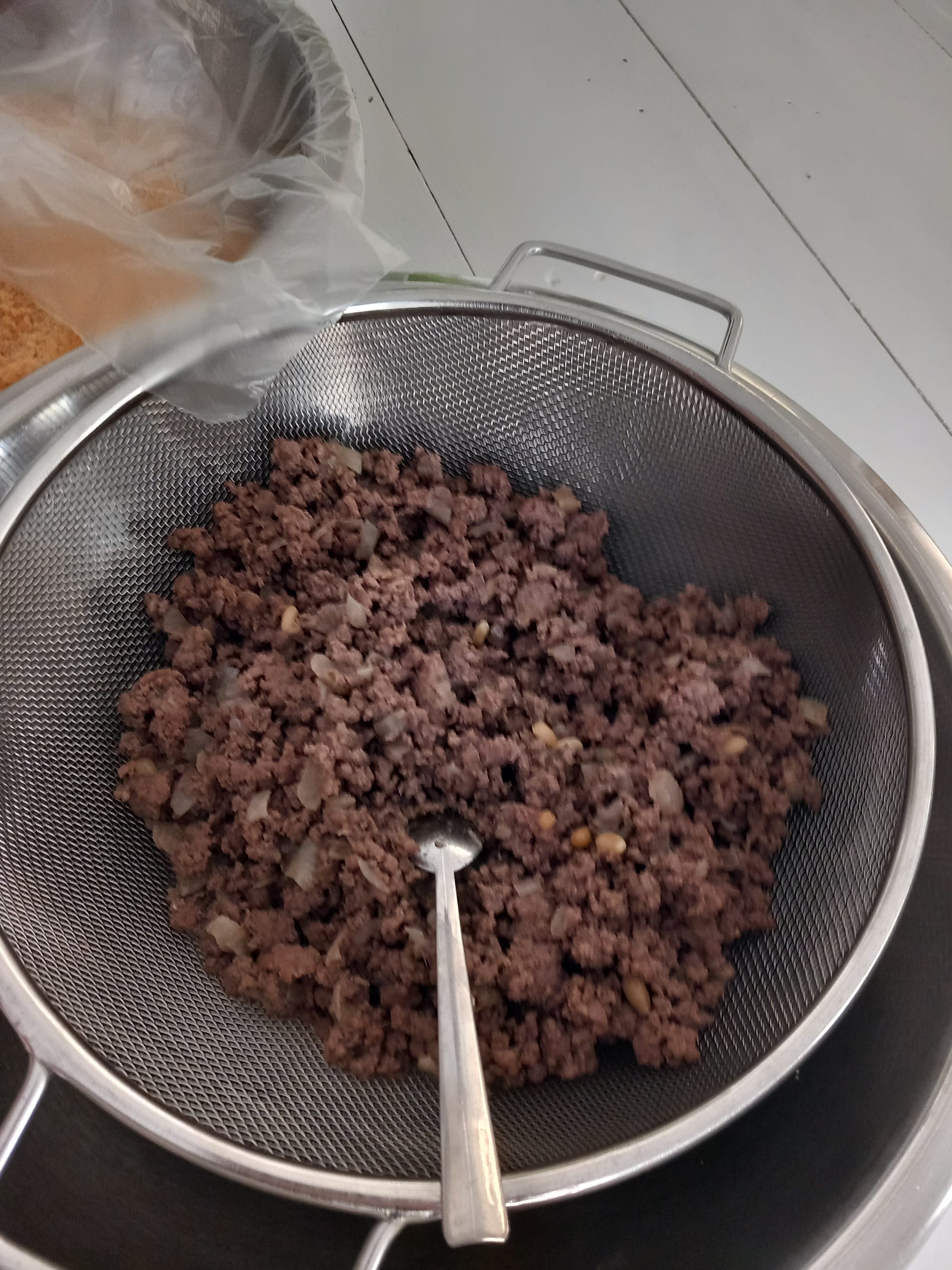 Make your filling. If mince, use about 400 g: fry some diced onion and add mince, tomato paste, cumin, pepper, salt and a pinch of cinnamon. Stir until cooked and add in 1 crushed clove of garlic at the end. For a vegetarian option: pan fry two punnets of mushrooms with diced onion, a little finely diced rosemary and one clove of minced garlic. Add a touch of balsamic vinegar towards the end. Let the mix cool and chop it up a little.
