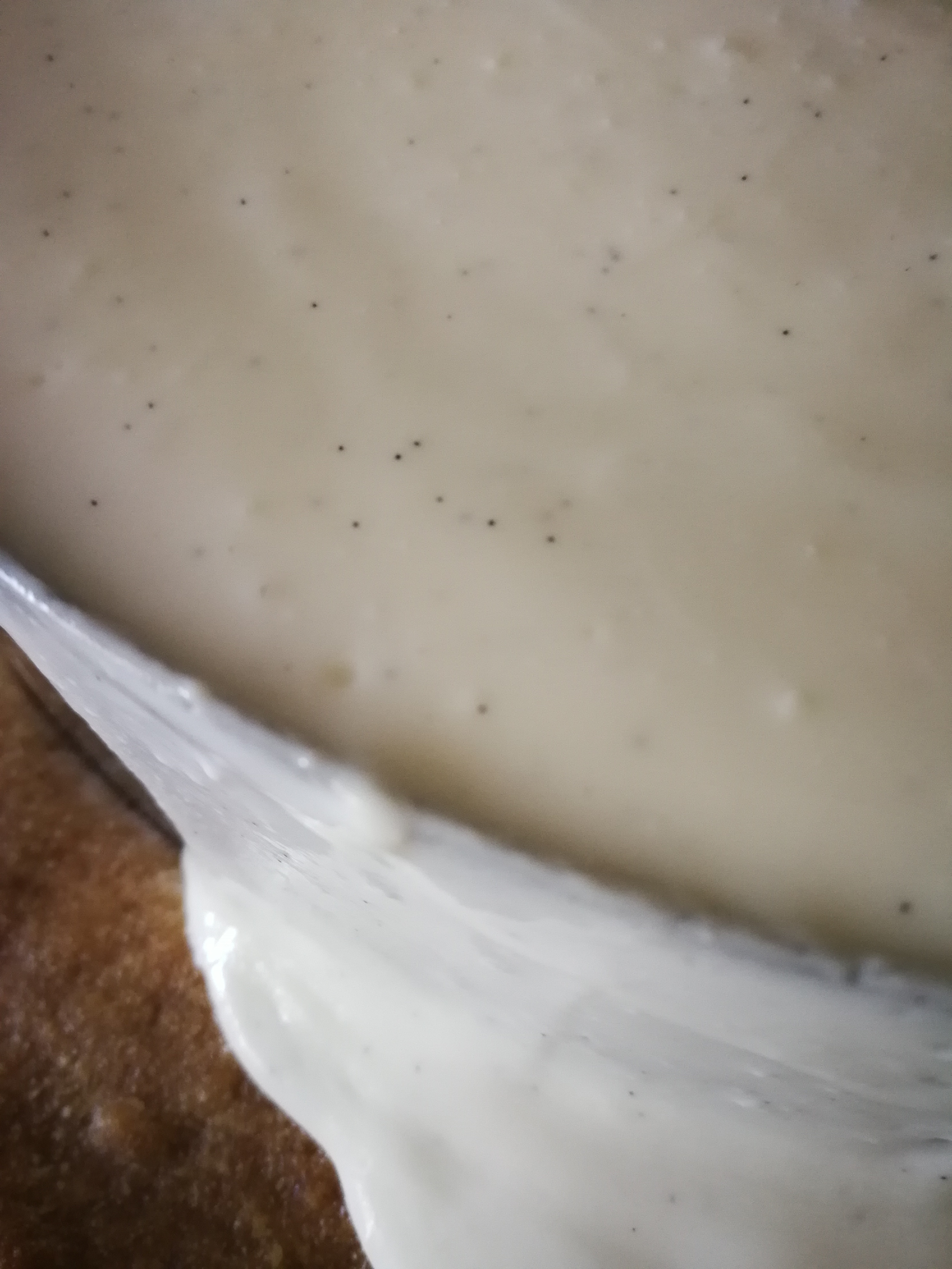 For the topping, add all its ingredients together, add the inside of half a vanilla pod, mix well with a whisk until smooth and set aside in the fridge.