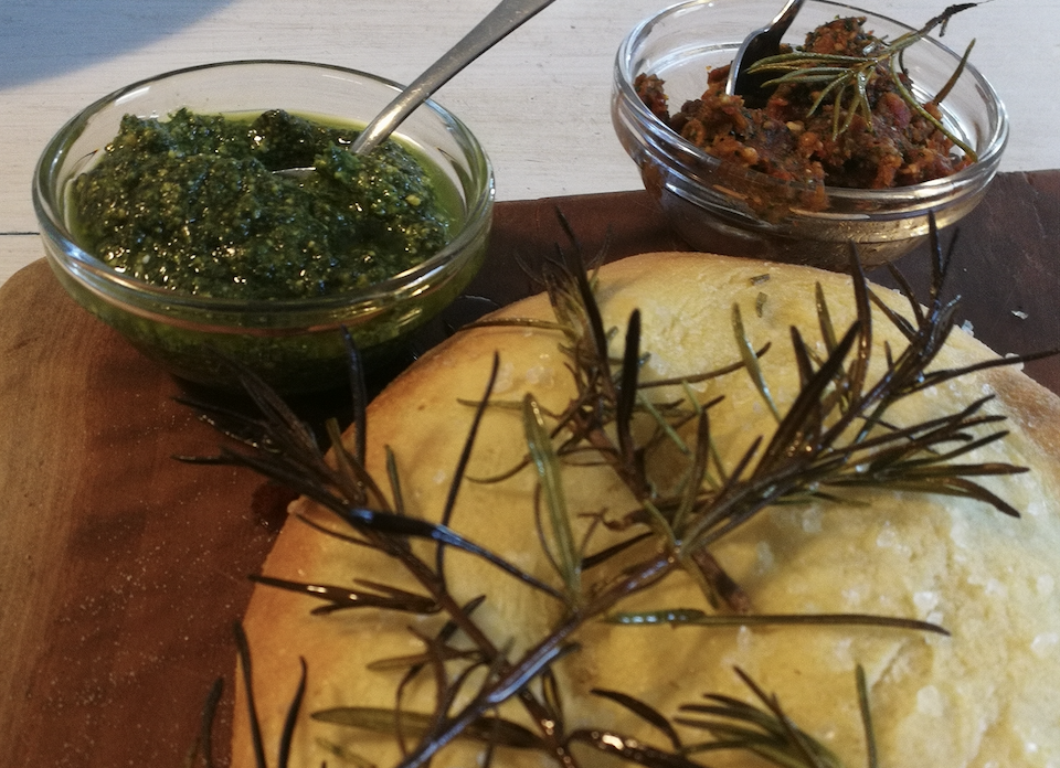 This recipe will make enough dough to make two large or three medium size Focaccia’s