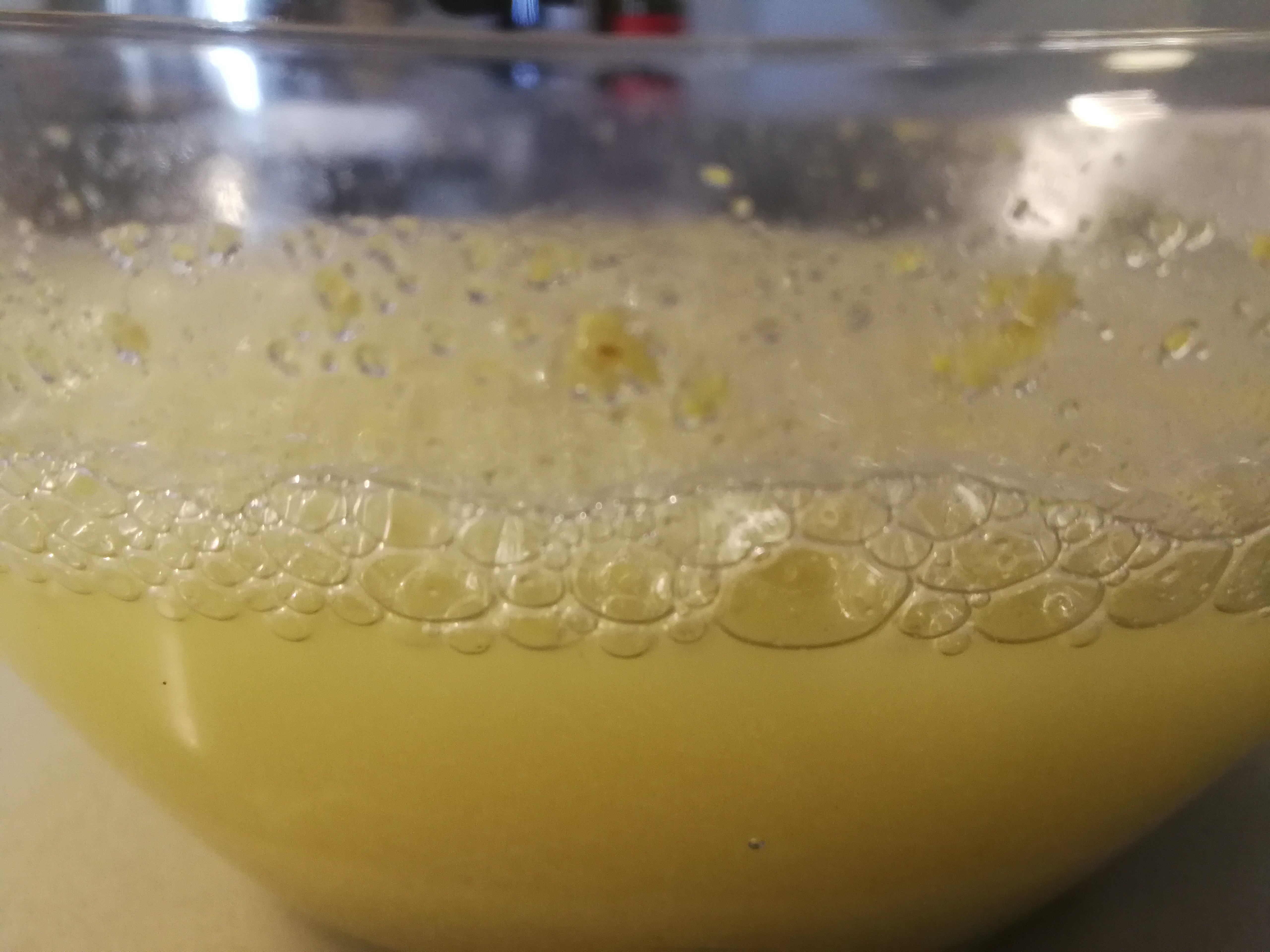 Remove from fridge the next morning, tip out excess water and using a metal spatula skim off the top gooey layer gently; this is important as it removes the bitterness from the mixture.