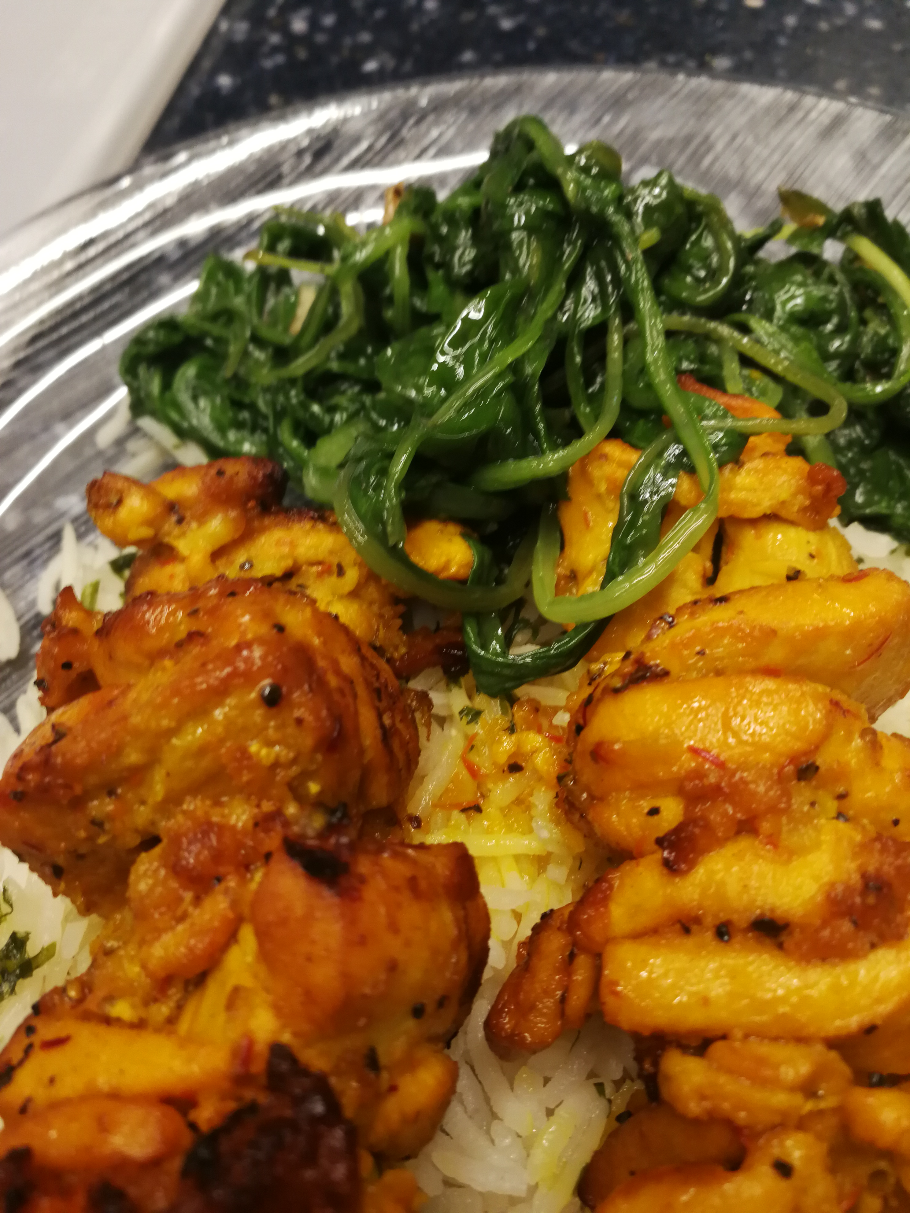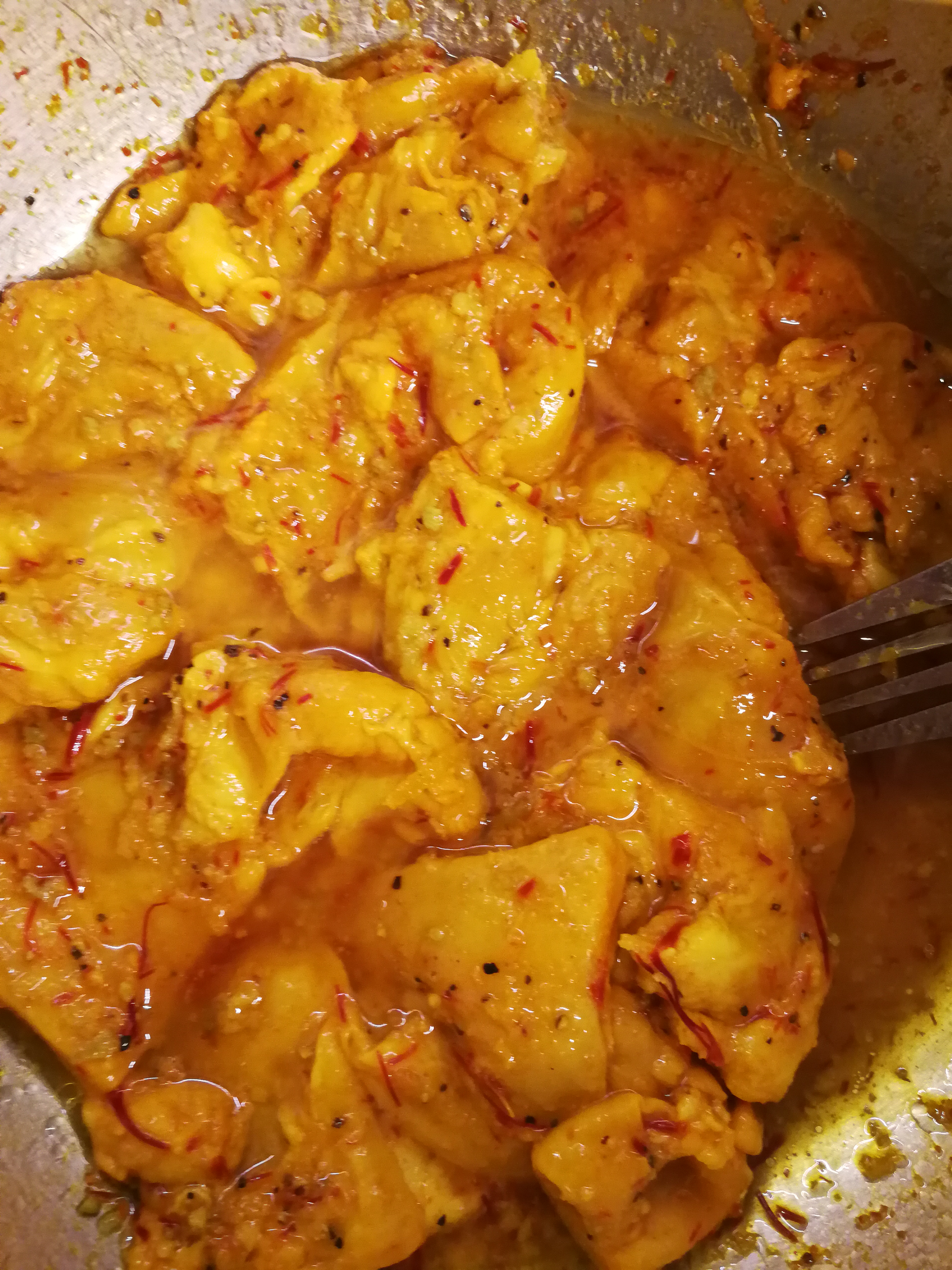 One of the Iranians’ favourite dishes is the little known (in the west) Joojeh Kebob, made from chicken breast or thigh meat, marinated in lemon or lime juice, chopped onion and saffron. Traditionally Joojeh is marinated for 24 to 48 hours; it’s pretty much cooked by the citric acid before the charcoal can singe the sides. With less patience than the traditional Persian, most of us make do with a mere 6-12 hours of marinating.