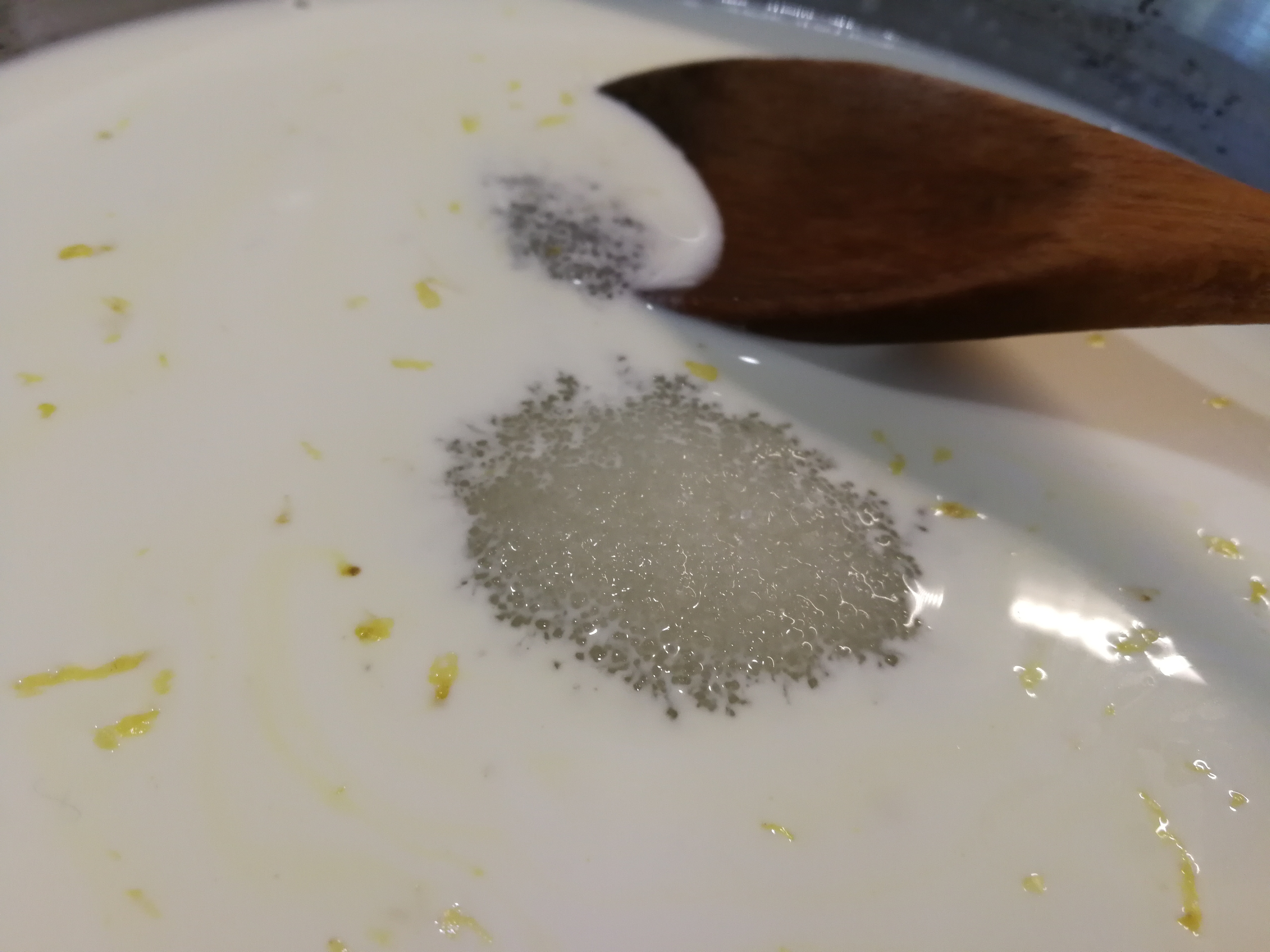 Grease four ramequins with a small amount of vegetable oil, turn over and leave so they will be ready for you to pour in the panna cotta mixture. Make sure you stir the mixture each time before you pour into the ramequins to ensure an even distribution of the zest.