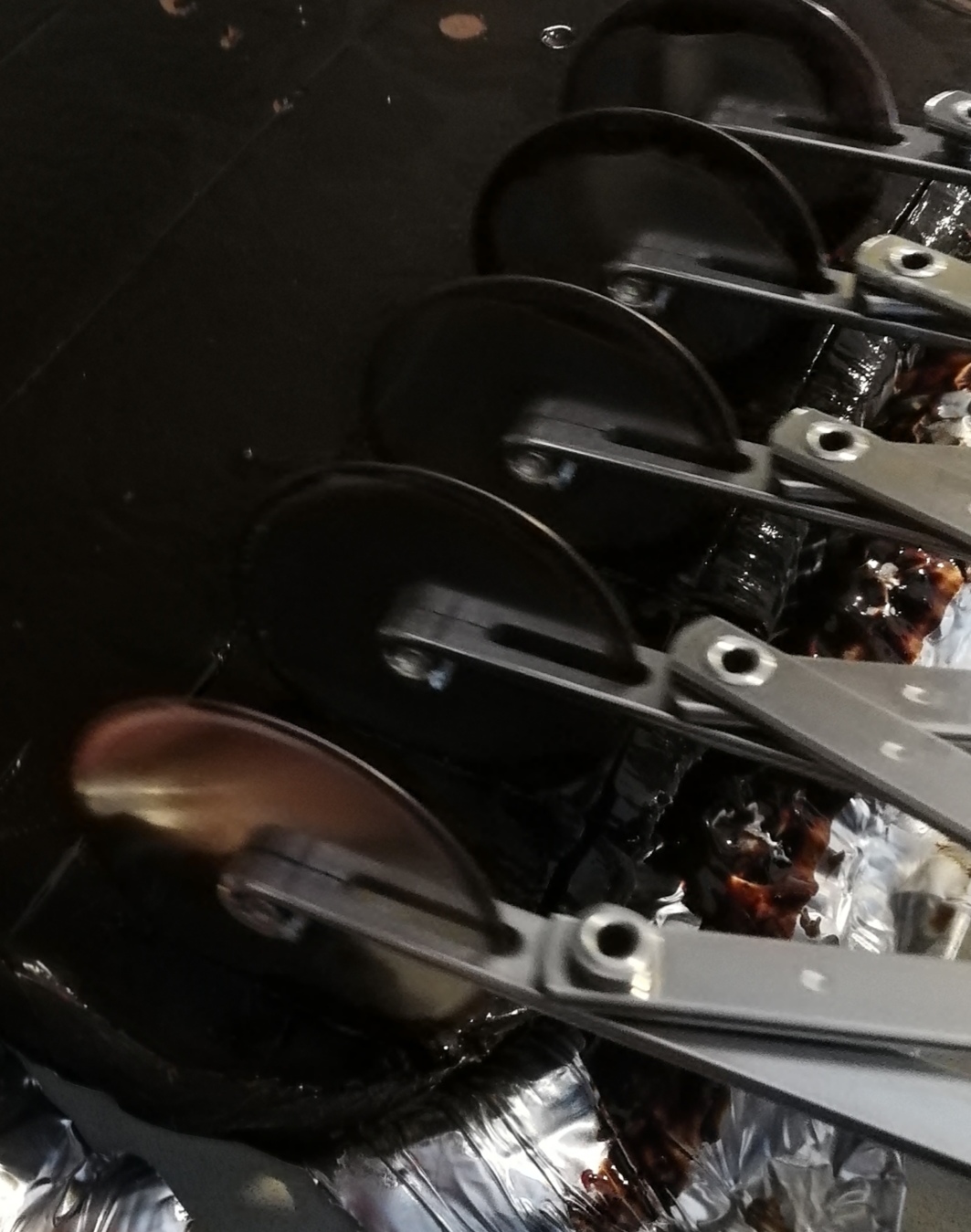 Place dark and milk chocolate from ingredients “B” in bowl on bain-marie. When melted, fold in hazelnut butter, then while still hot, pour over the nut and cocoa mixture. Using a metal spatula, level. Move to freezer to harden.