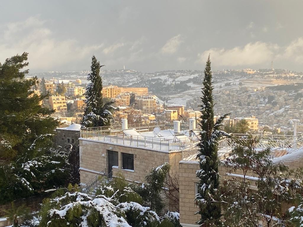 Jerusalem is a wondrous sight on a regular day. When blanketed white she takes on a mantle of regality, serenity, for a moment snuffing out the ever-present tension; but only for a moment.