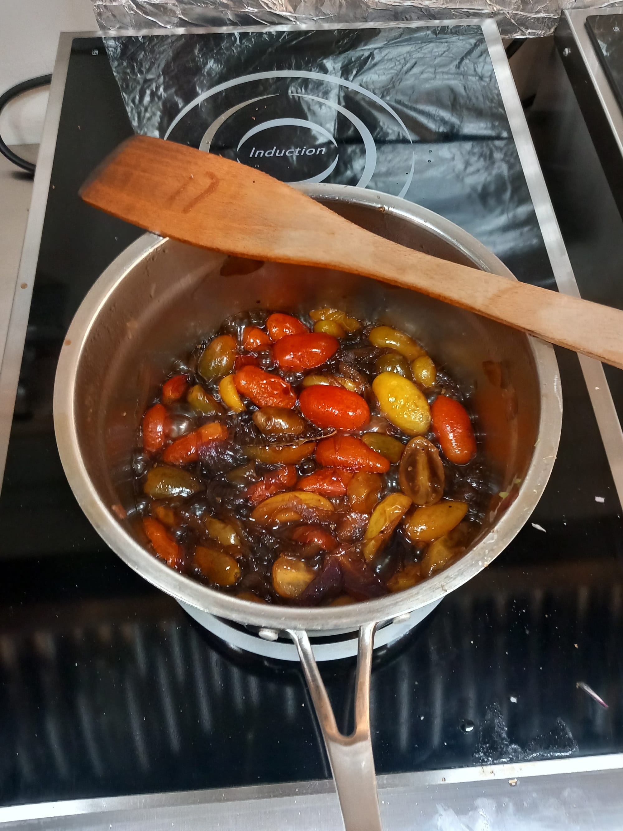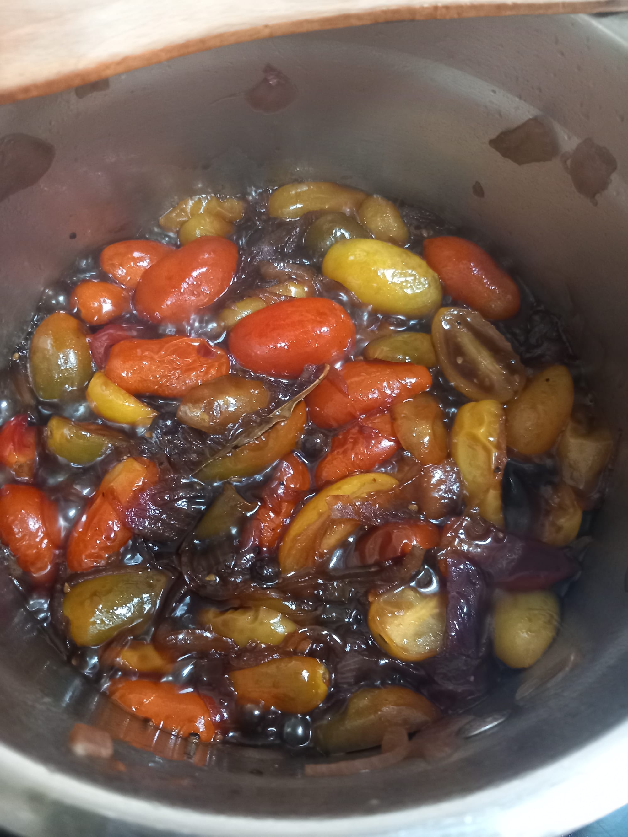 Cherry tomatoes come in many colors and shapes and make for a very hasty and tasty chutney. Quick to prepare and easy to make, this is a wonderful companion to meats, cheeses, sandwiches and snacks.