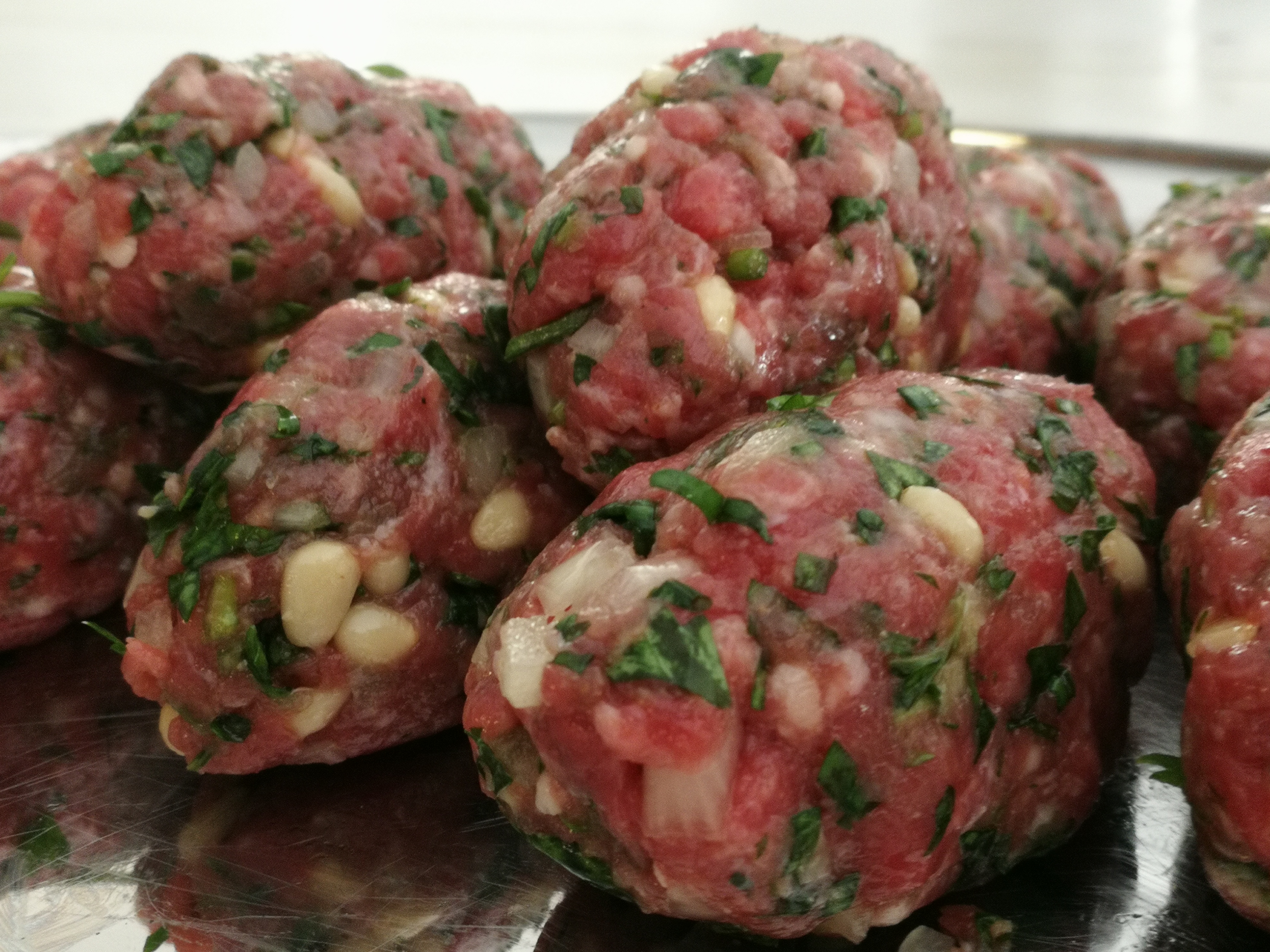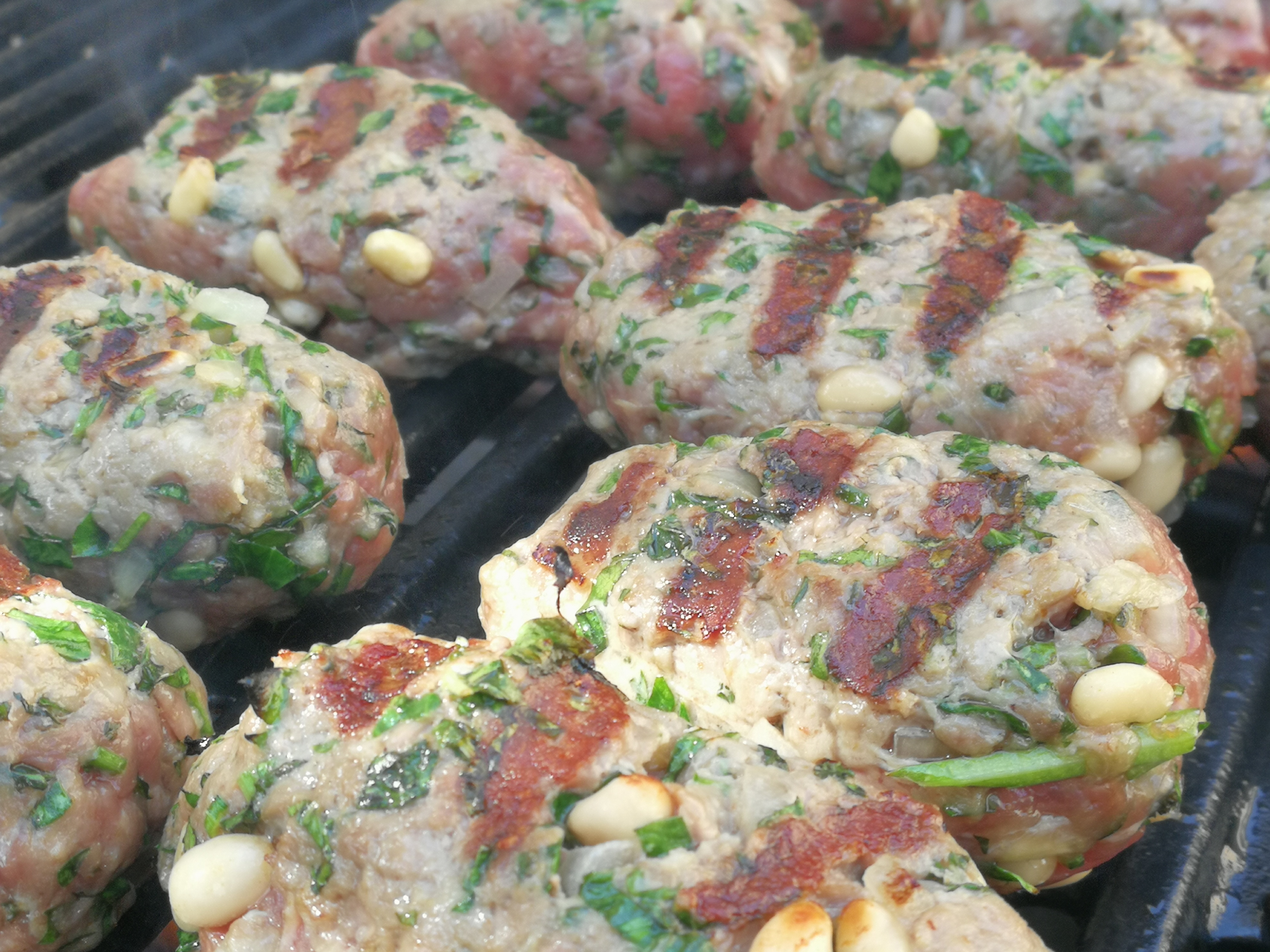 Add all of the ingredients to a bowl. Wearing a pair of latex gloves mix thoroughly, cover the bowl with cling wrap and refrigerate for 30 minutes. Remove from fridge and make 50-60 gram kebabs holding in one hand, compressing, turning, shaping. This amount will make 10 -12 kebabs, enough for 4 people. Leave to sit for 30 minutes in fridge and turn on BBQ to high heat.