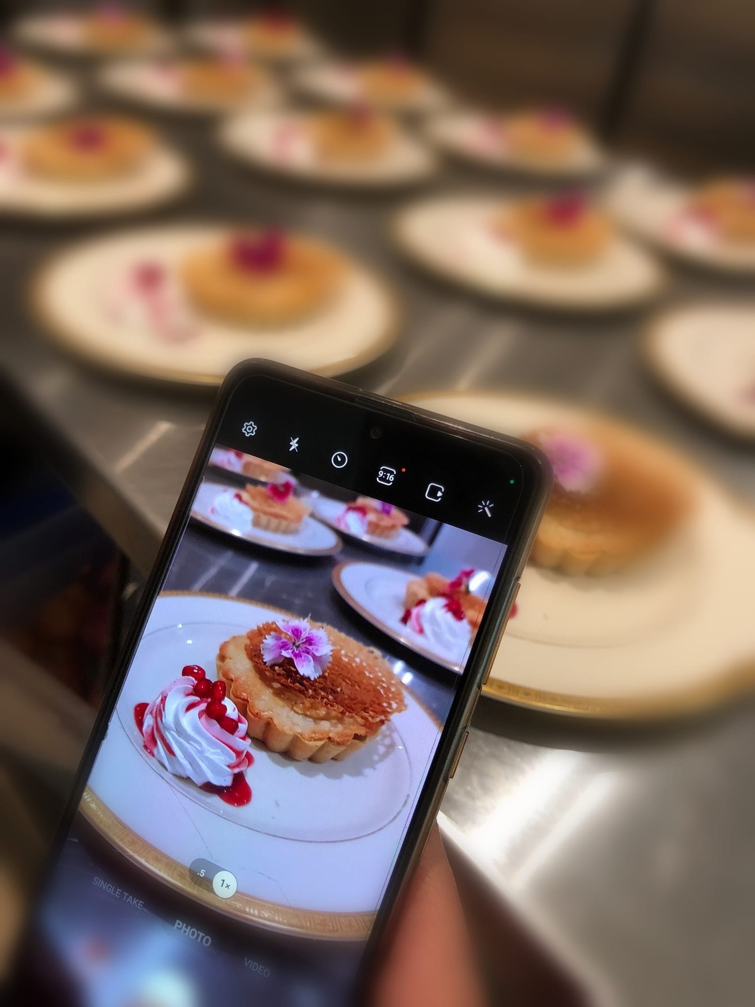 Dessert was apple tart with Chantilly cream and pomegranate coulis.