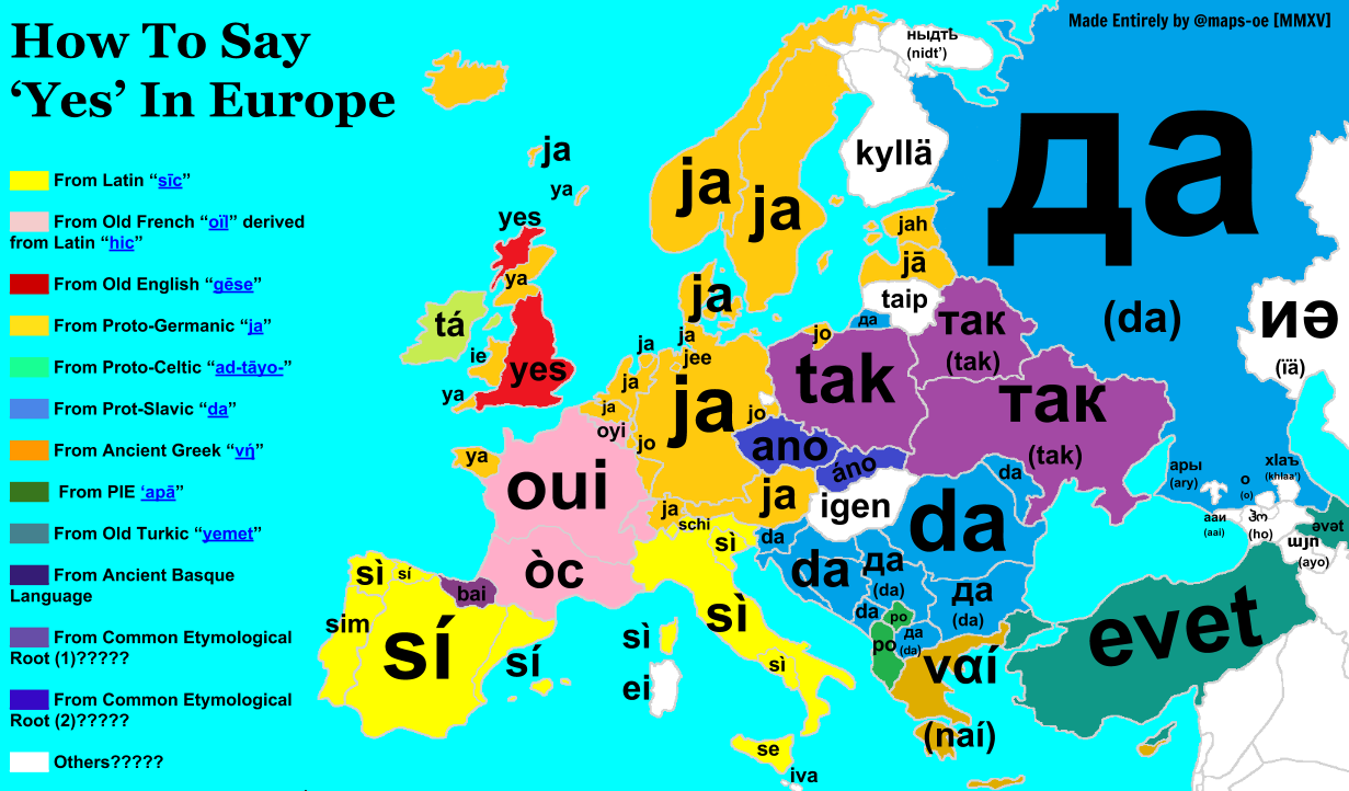 The BFD Map of the Day: How to Say ‘Yes’ in Europe